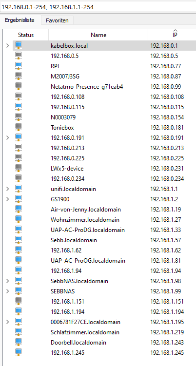2. Geräte/Komponenten (man siehe Beitrag #92) sowohl im 0.x als auch im 1.x IP-Kreis per Scan gefunden?