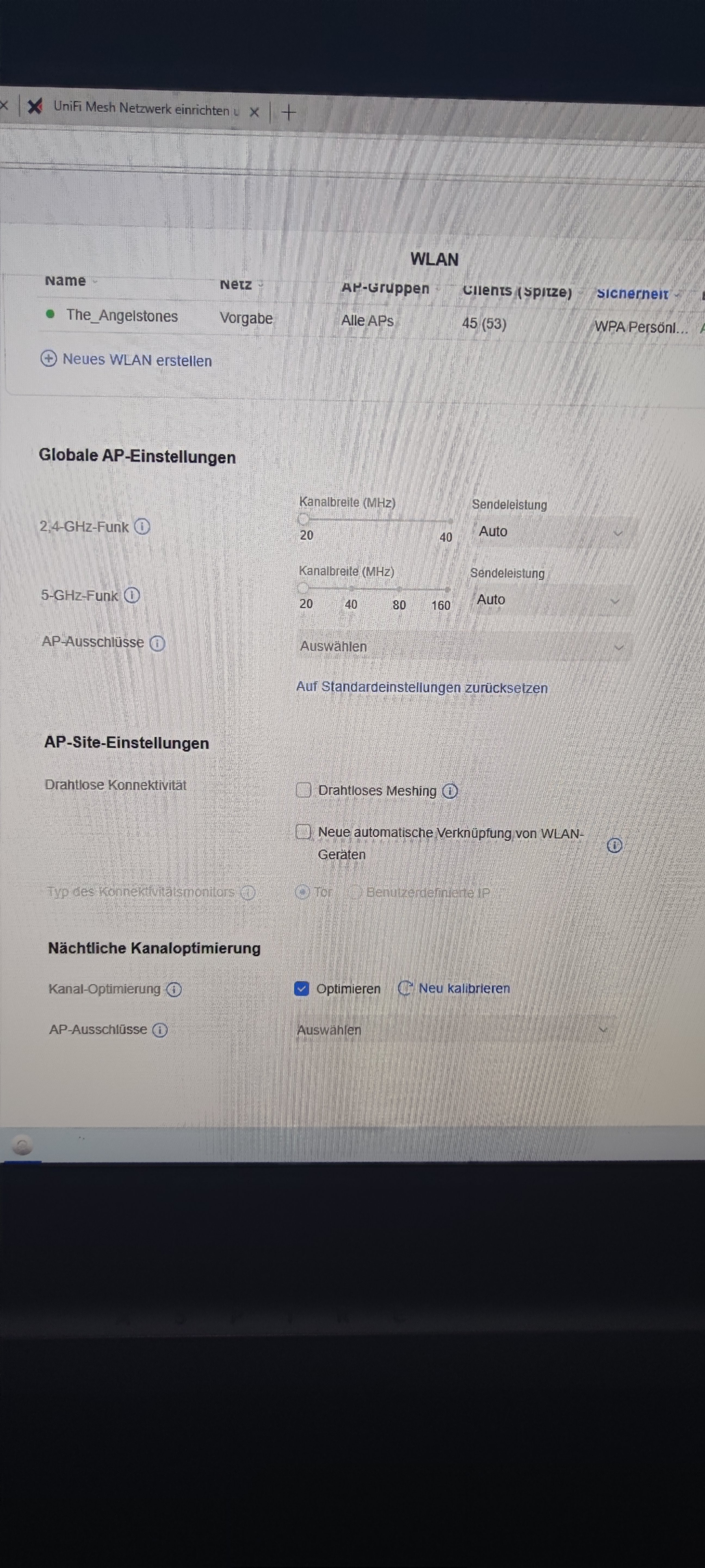 Gern kann ich zu den Einstellungen heute Abend Screenshots machen. Jeden AP einzeln einstellen oder über das Wlan Menü gesammelt.