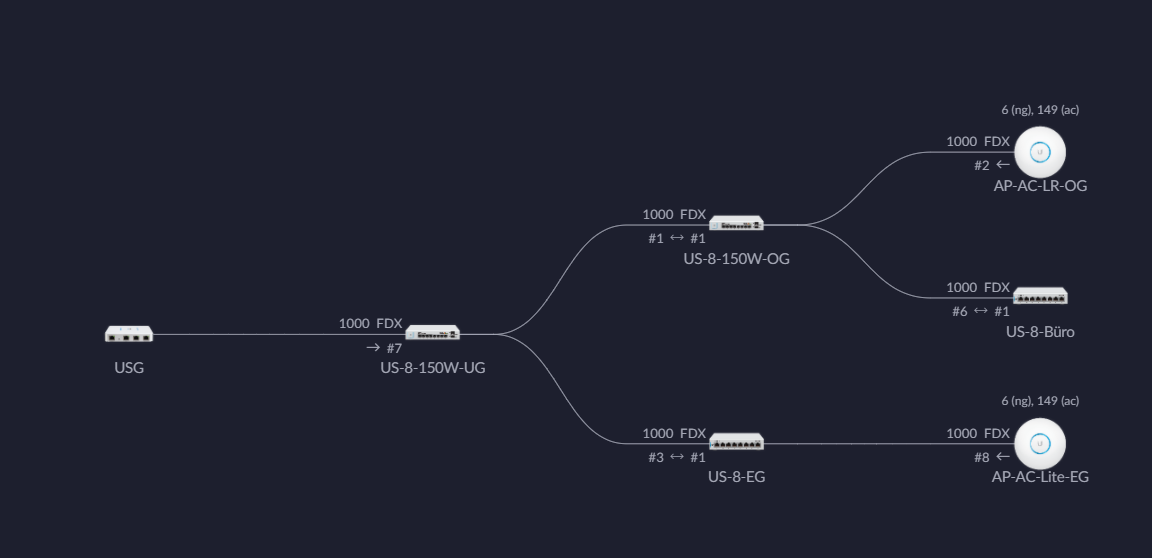 An diesem US-8-150W hängt noch ein UAP-AC-LR, sowie ein N510 Pro für DECT.