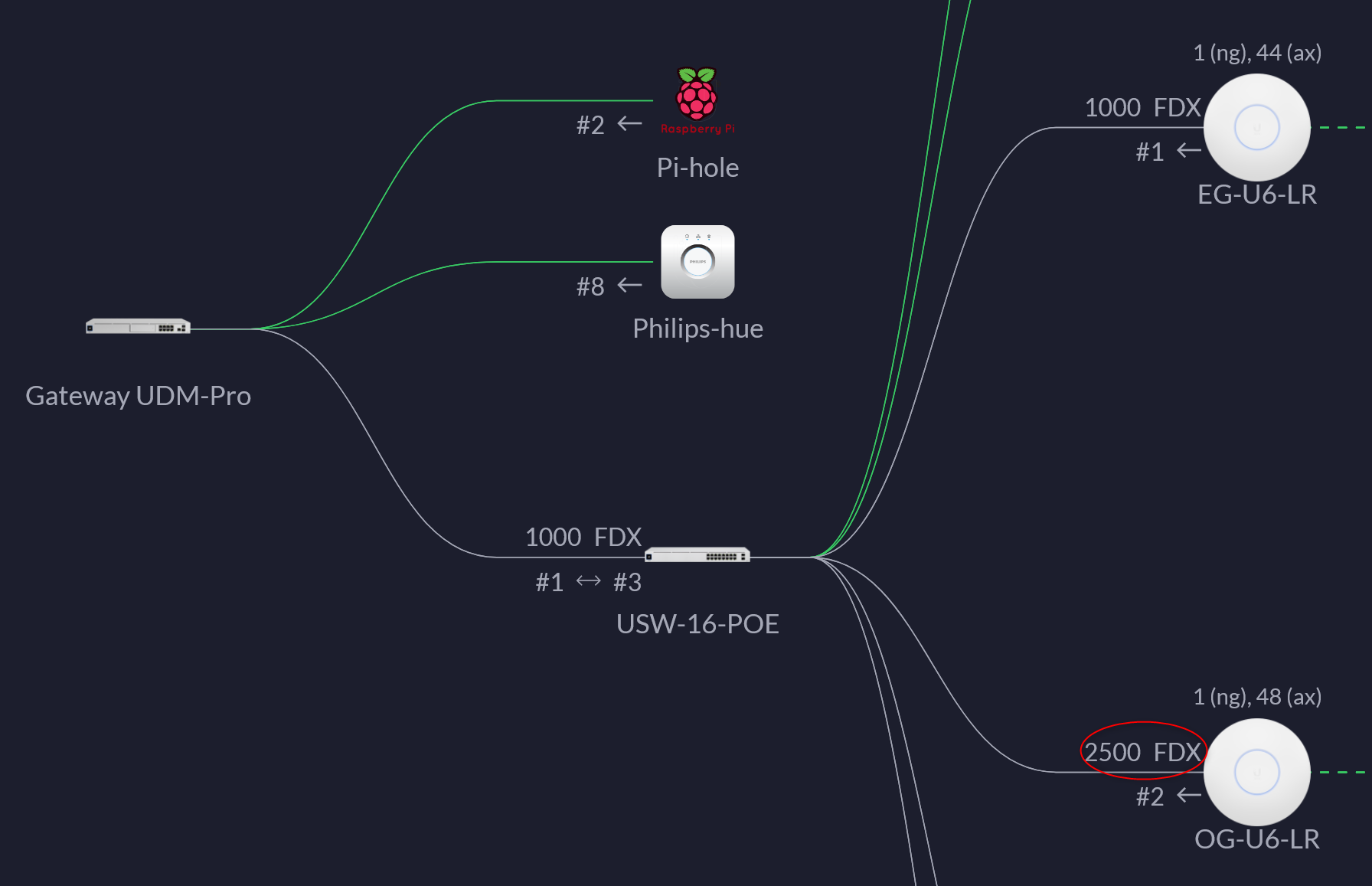 Laut dem UniFi Controller ist einer meiner neuen U6-LR WiFi6 Access Points mit 2500Mb/s statt den üblichen 1000Mb/s angebunden, was gar nicht möglich sein sollte (ich finds toll