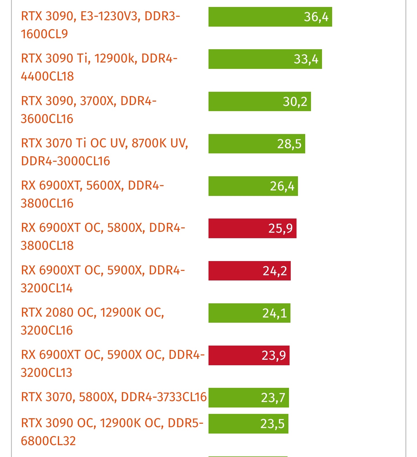 Interessant bei meinen Ergebnissen mit der RTX 3090 ist, das ich trotz langsamen Ram, langsame CPU im Ranking bei den beiden 4K Benchmarks fast unmittelbar unter den RTX 4090er liege obwohl viele andere User deutlich leistungsstärkere CPUs und schnelleren Ram haben!