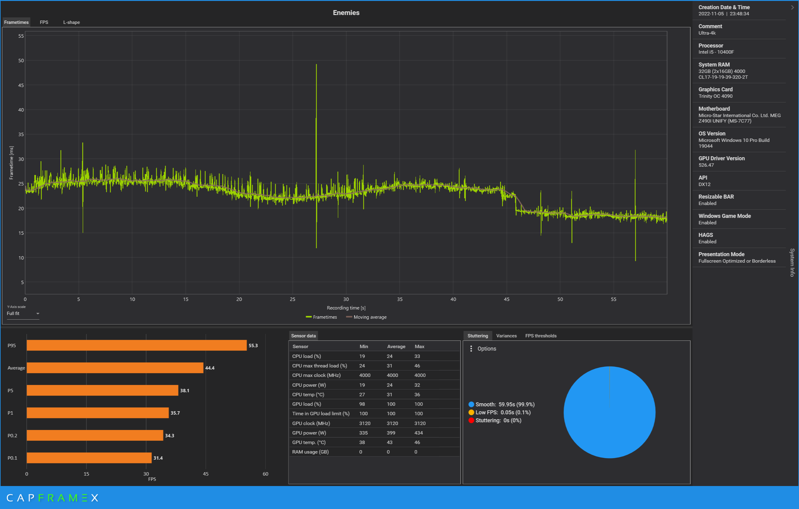 Btw. hier kann man auch die CPU Last erkennen. Nichts mit CPU Limit aber GPU ist nice ausgelastet. Bei 4K-Ultra laufe ich ins GPU Power Limit aber CPU ist unbeeindruckt.
