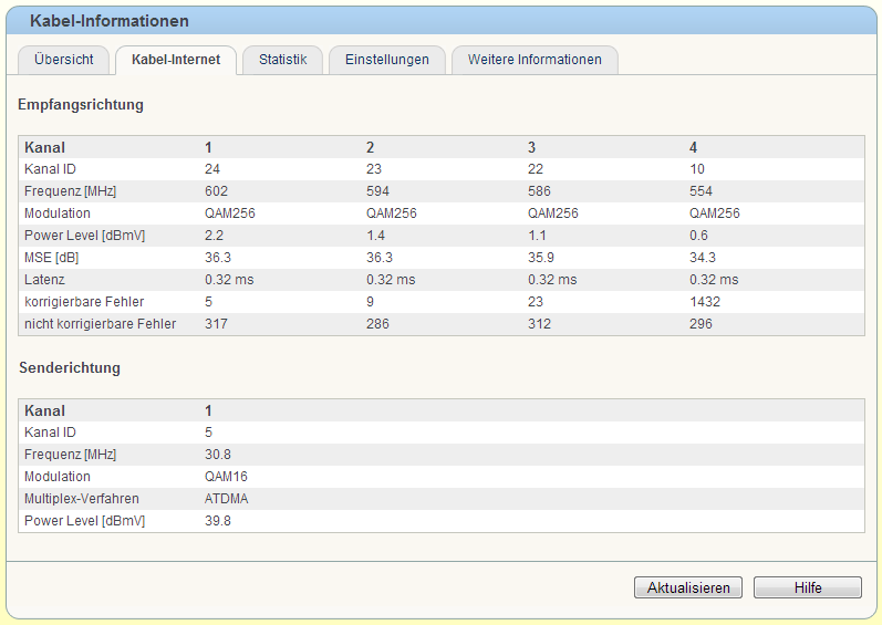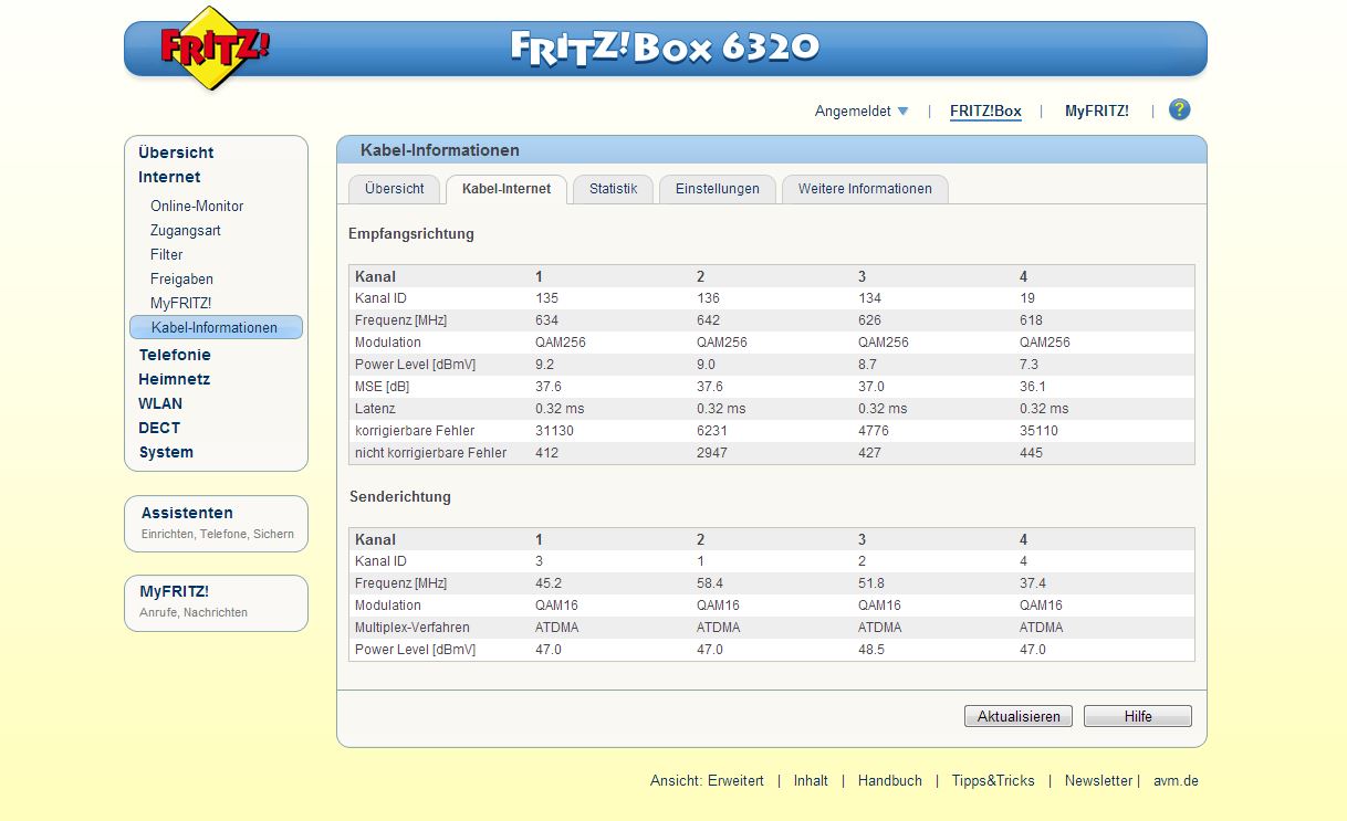 PowerLevel im Downstream waren bei 8dbmv (ich hätte mehr erwartet...)