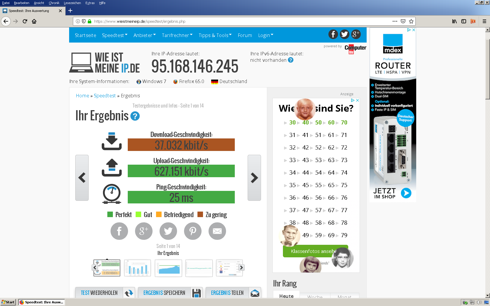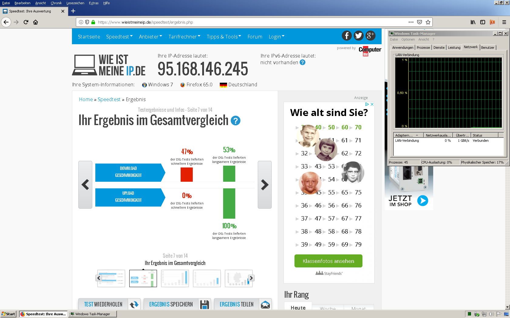 achja, mach mal den test bei wieistmeineip.de erneut und mach einen screenshot währendessen von der cpu auslastung. du scheinst nen ziemlich altes system zu nutzen auf den bildern.