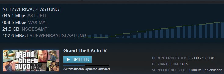 Und zu den Kandidaten mit "das kann man doch nie auslasten" sei nur folgendes gesagt: Steam, Uplay, Origin, Rockstar, alle erlauben bei mir die volle Bandbreite. Nur der Microsoft Store hängt irgendwo bei 200 Mbit/s rum...