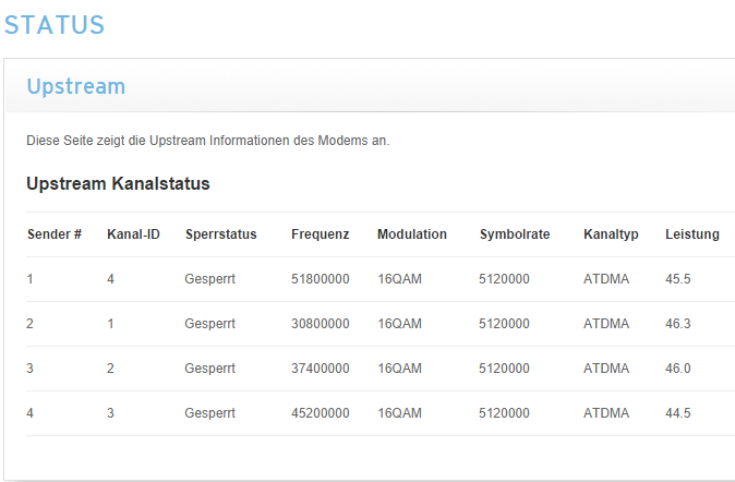 Demnach weicht bei mir der Downstream Power Level aus, der Rest ist im optimalen Rahmen: