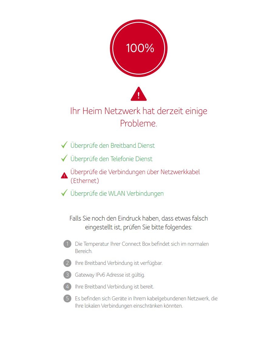 Wenn ich den Test der Connect Box durchlaufen lasse, meldet der mir LAN/Kabel Fehler?!?/Probleme?!?