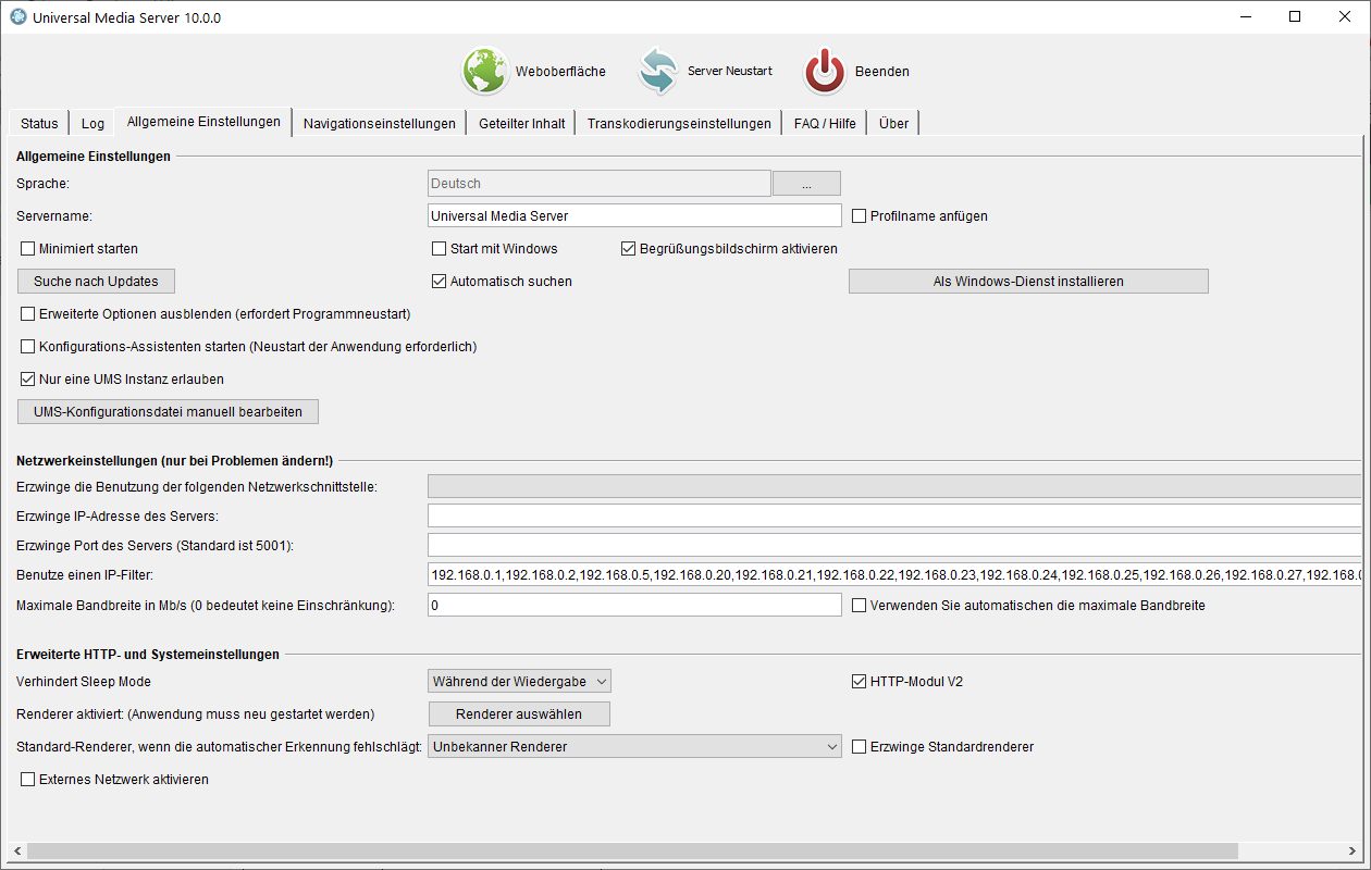 Alternativen wären Kodi oder Plex, aber UMS hat seine Stärken bei der Einbindung von Untertiteln und kann auch auf bestimmte Geräte per IP eingeschränkt werden.