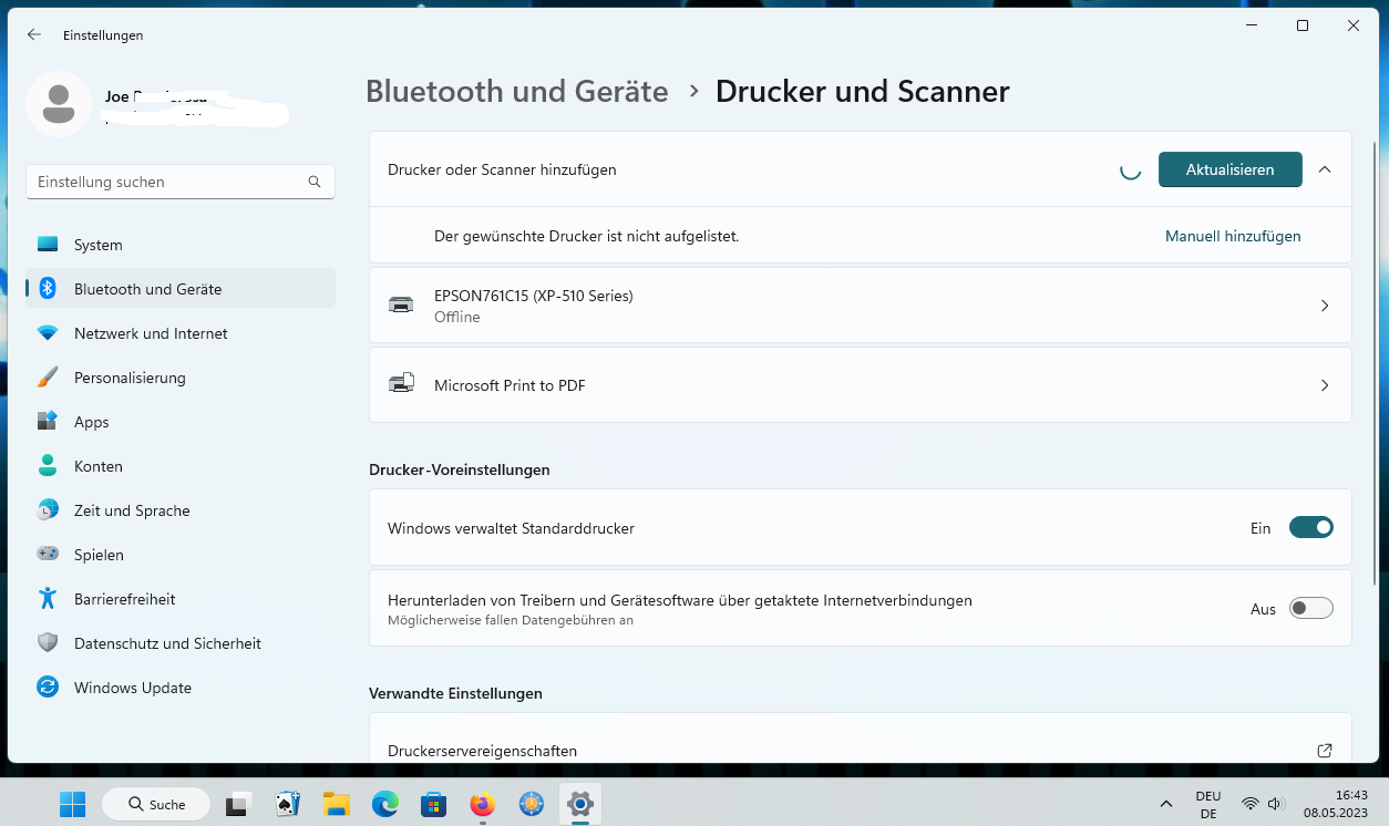 Den Treiber muss Windows nachladen, Sie meine Bild in #19. Der wird defintiv von Windows ausgeliefert. Man muss den Drucker nur händisch hinzufügen und Windows Drucker nach laden lassen.
