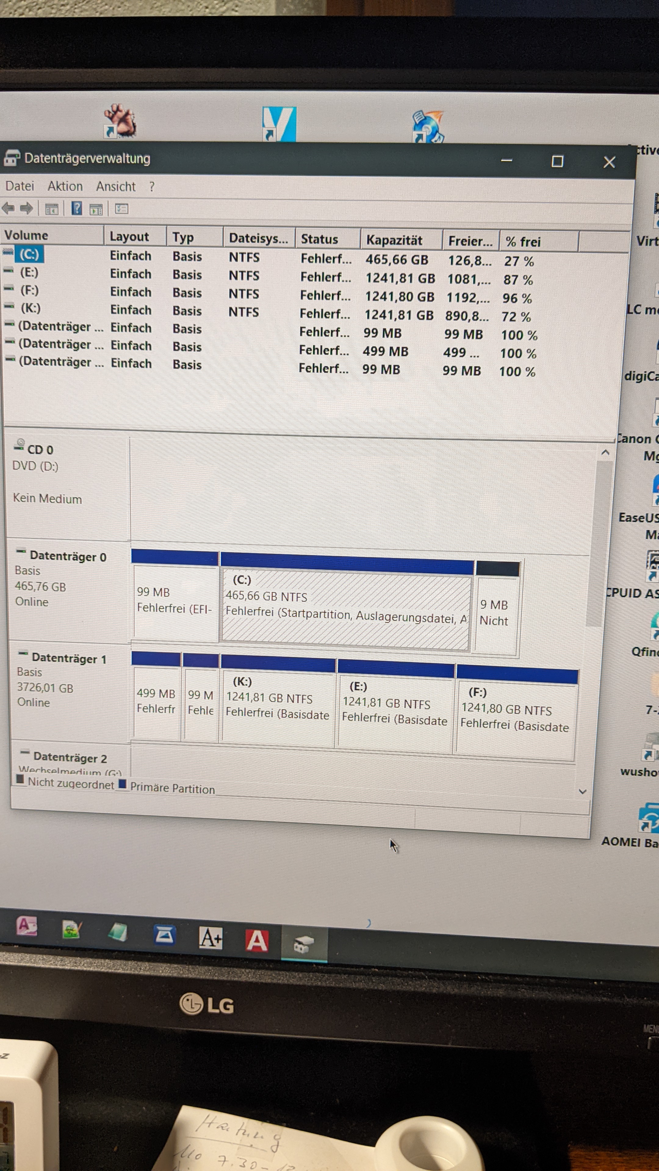 Dafür aber Wirrwarr bei den HDDs. Bisher in meinem System: C: mit Windows, D. mit Daten, E: mit anderen Daten, insgesamt 4TB.