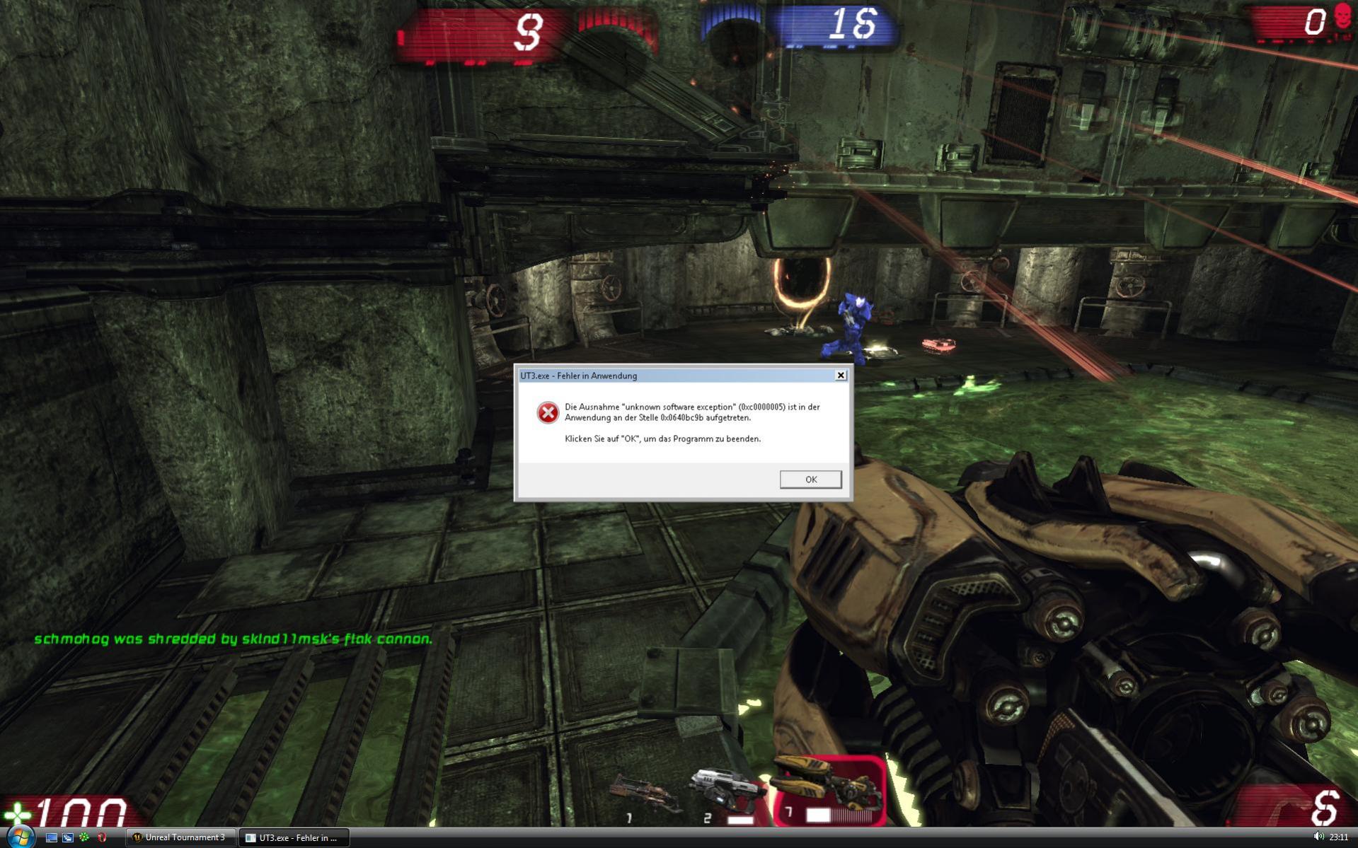 ich habe ein riesen Problem mit Unreal Tournament 3. Das Spiel stürzt immer an einer bestimmten Stelle in der Map "Deck" ab mit folgender Meldung: