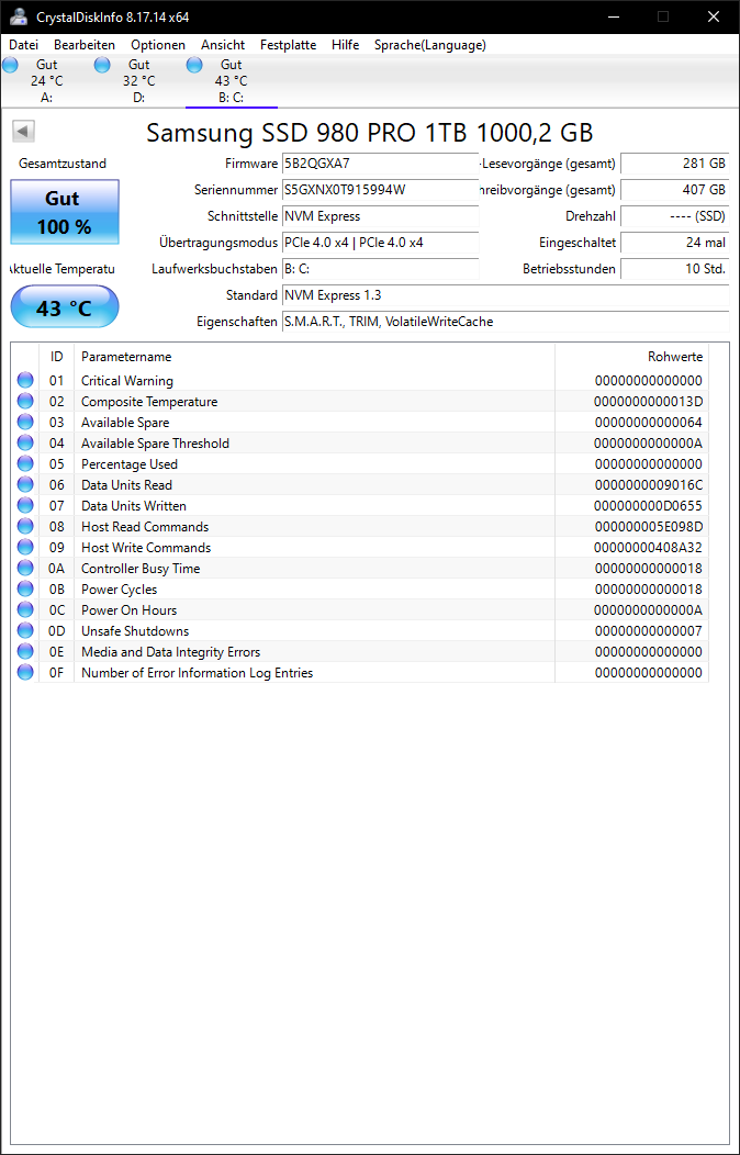 AuĂźerdem ist windows schon auf einer neuen festplatte (Samsung 980pro)