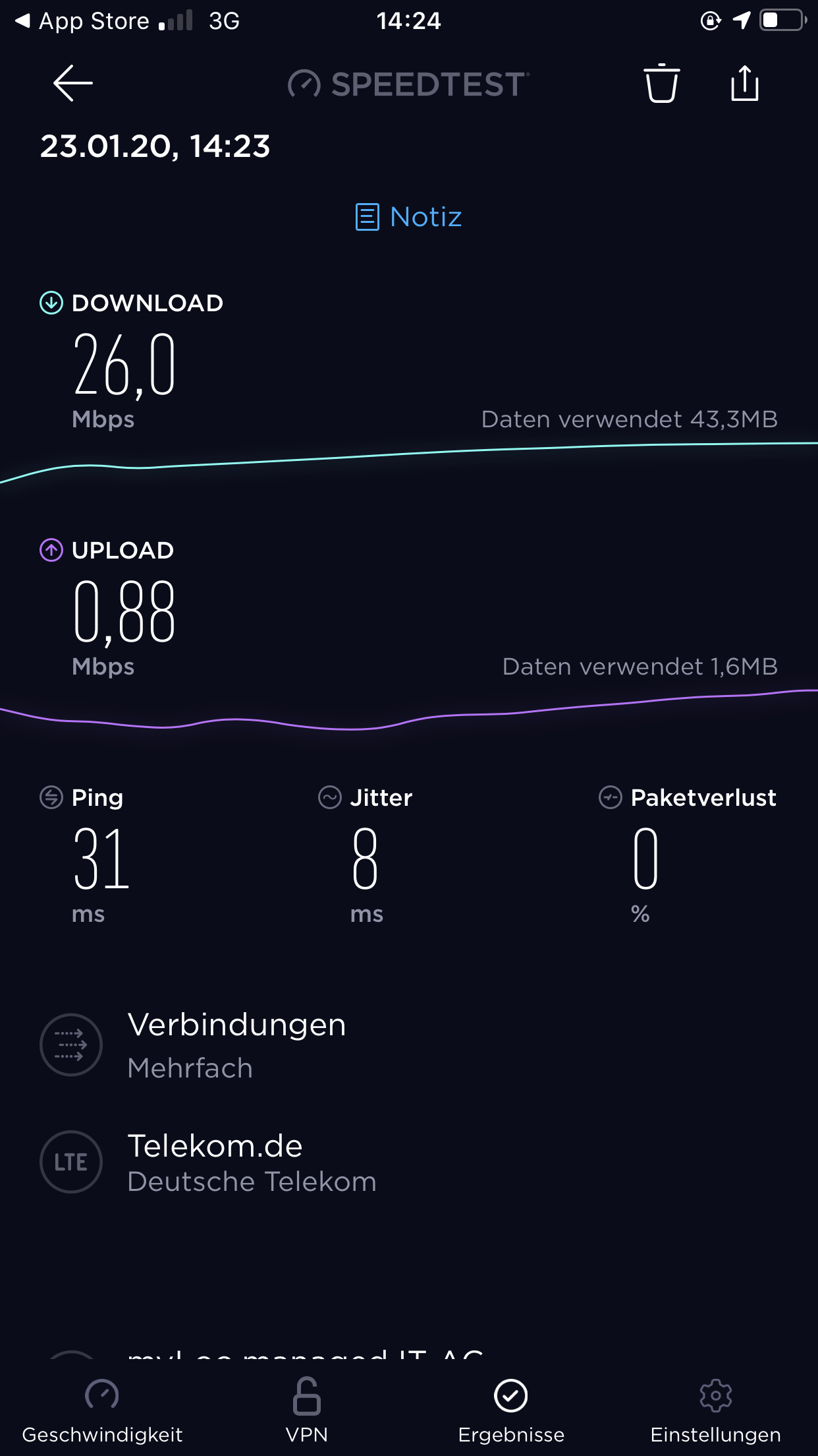 Mach Mal einen speedtest (auf speedtest.net) und teile den - glaub ich ja kaum.Akkulaus schrieb:ich hab 0 Probleme mit o2 und es kommt ca. 100-102% an![]()