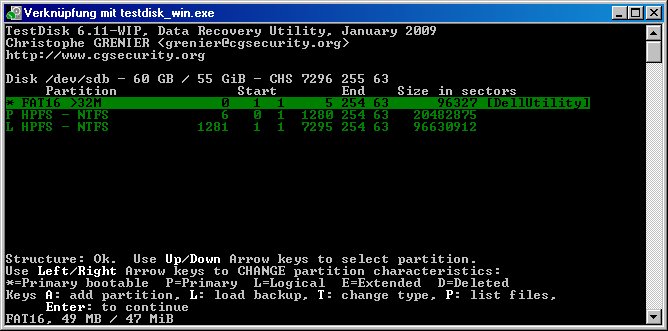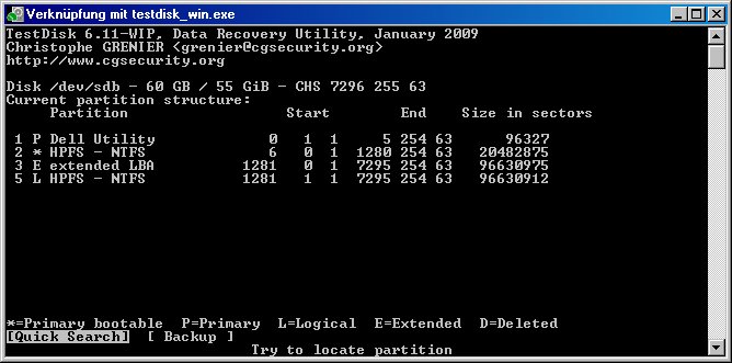 So nun habe ich die aktuelle Version von TESTDISK (März 2009)