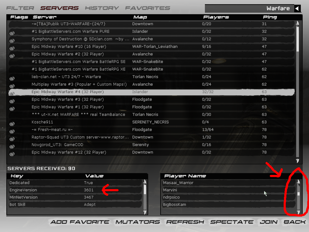 Heute erst wieder ein Warfare-Server mit Version 3601 und 31 Spielern -> kein einziger Spieler im Server-Browser zu sehen.