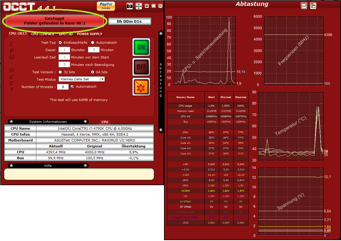 Momentan habe ich den IMC und VTT mehr Volt gegeben sowie den Ram 1,75 Volt. System blieb für 30mins stabil, danach taktet sicher der Prozessor von 4GHz auf 3,2GHz trotz gute Temperaturen (heißester Core 69C). Warum ist das?
