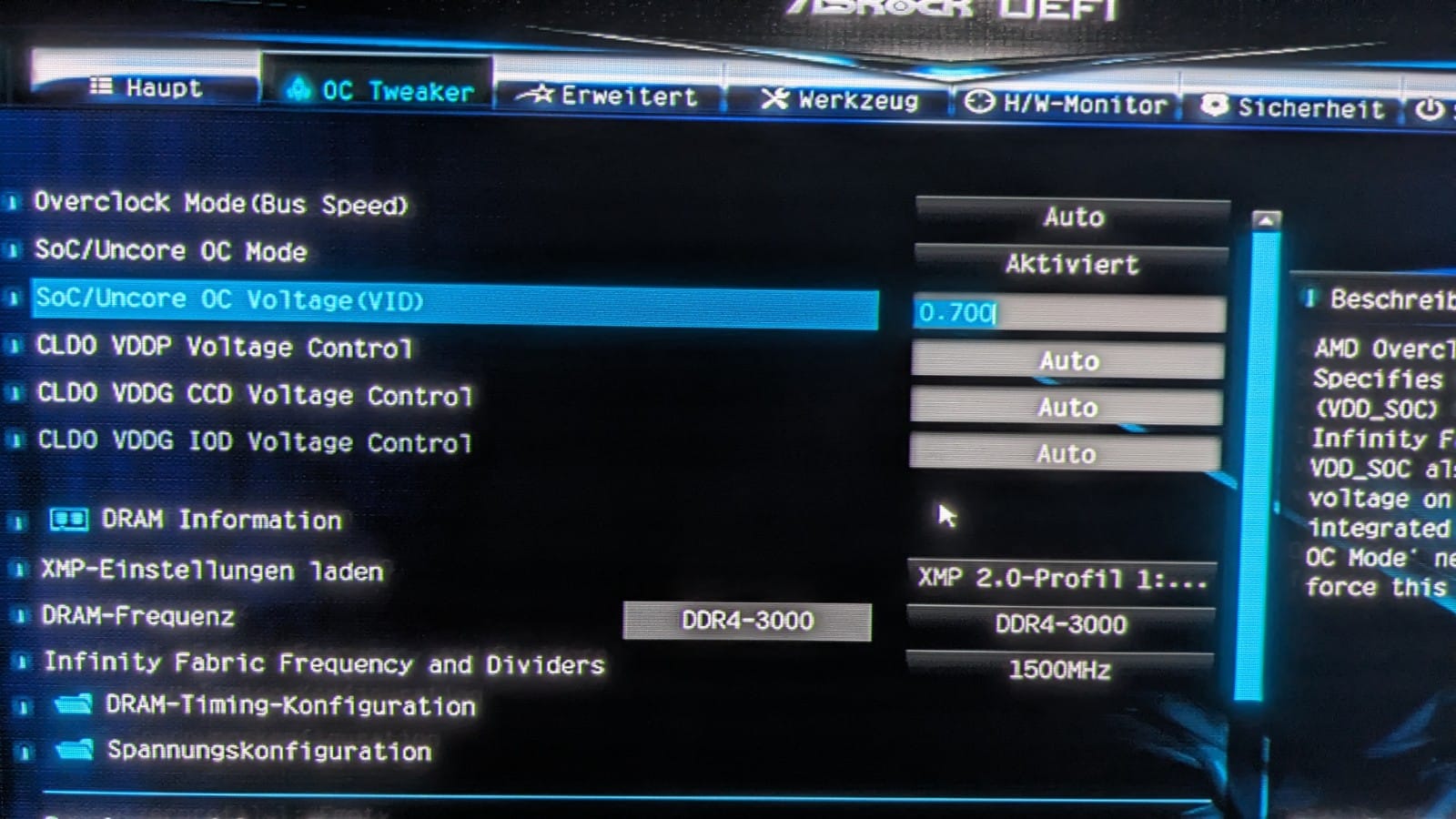 Nun sehe ich bei dem A520er Bios nicht durch welche Spannung für die CPU ist.
