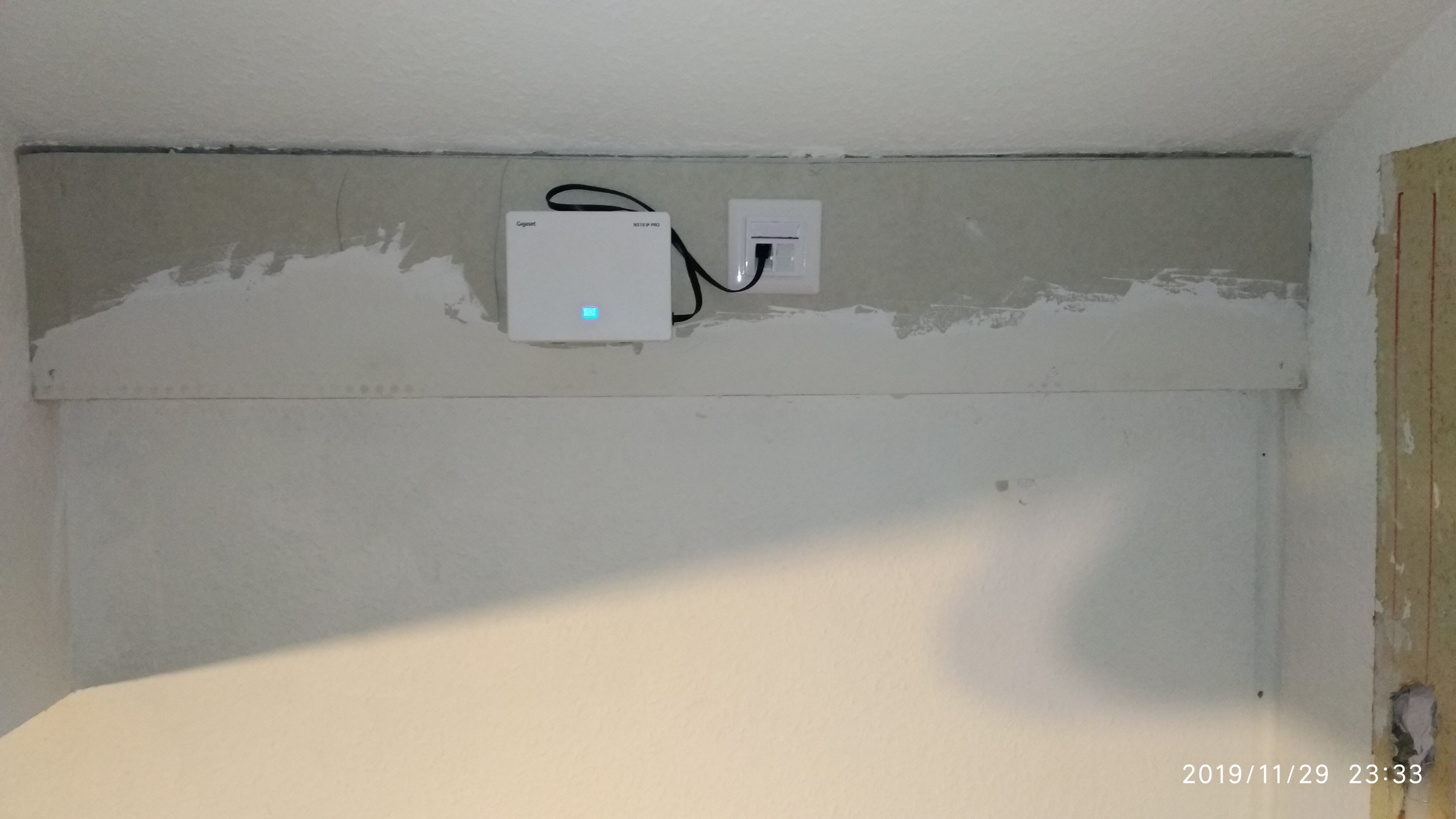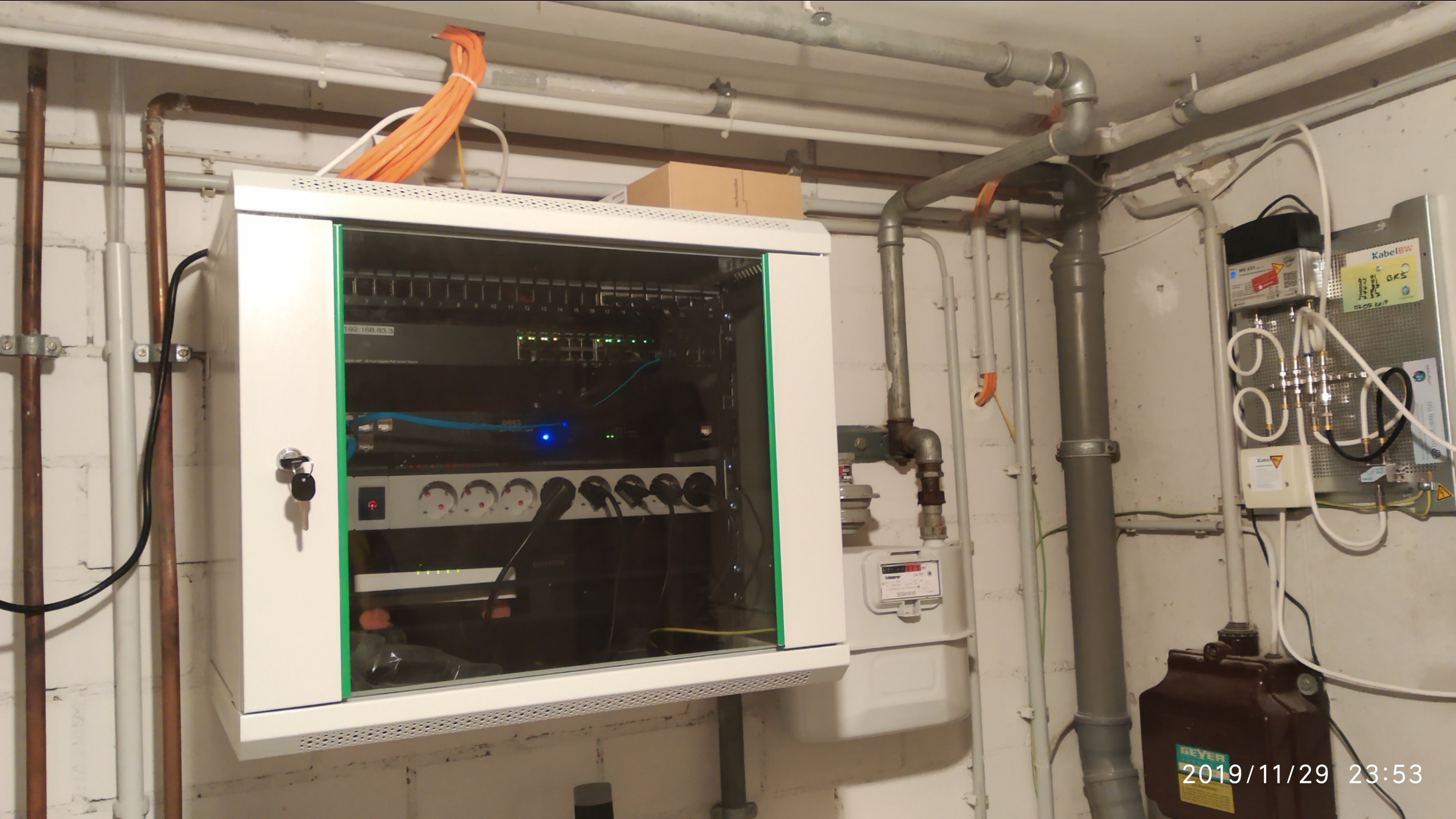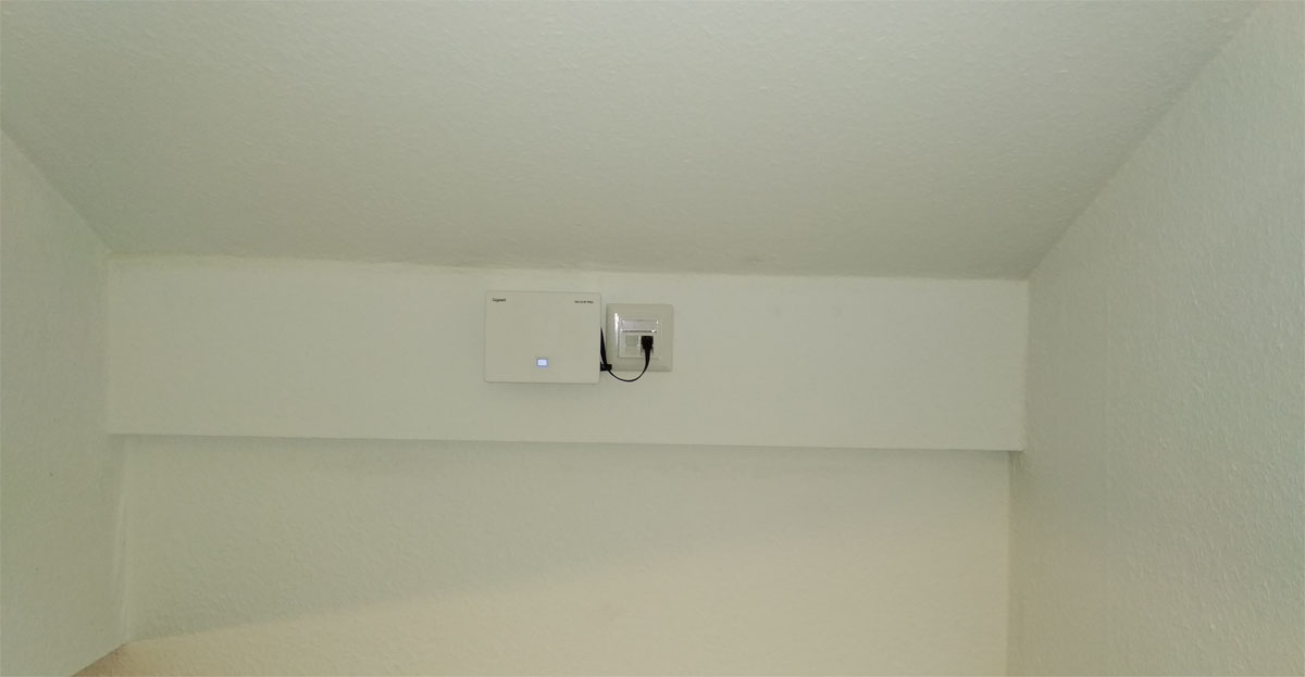 Zuvor sind wir vom Router im Keller mit einem zentralen Kabel in die Wohnung gefahren und haben dort mittels kleinem switch alles in der Wohnung verteilt.