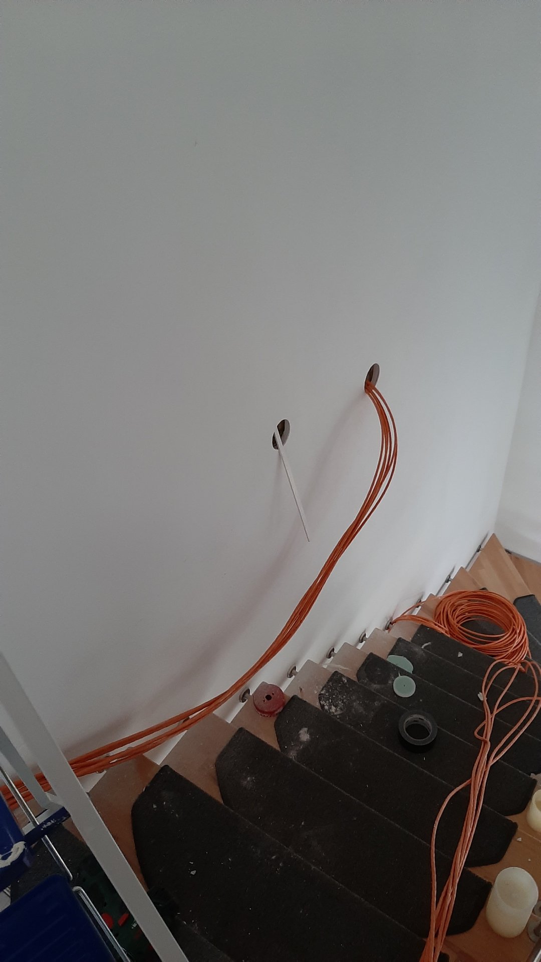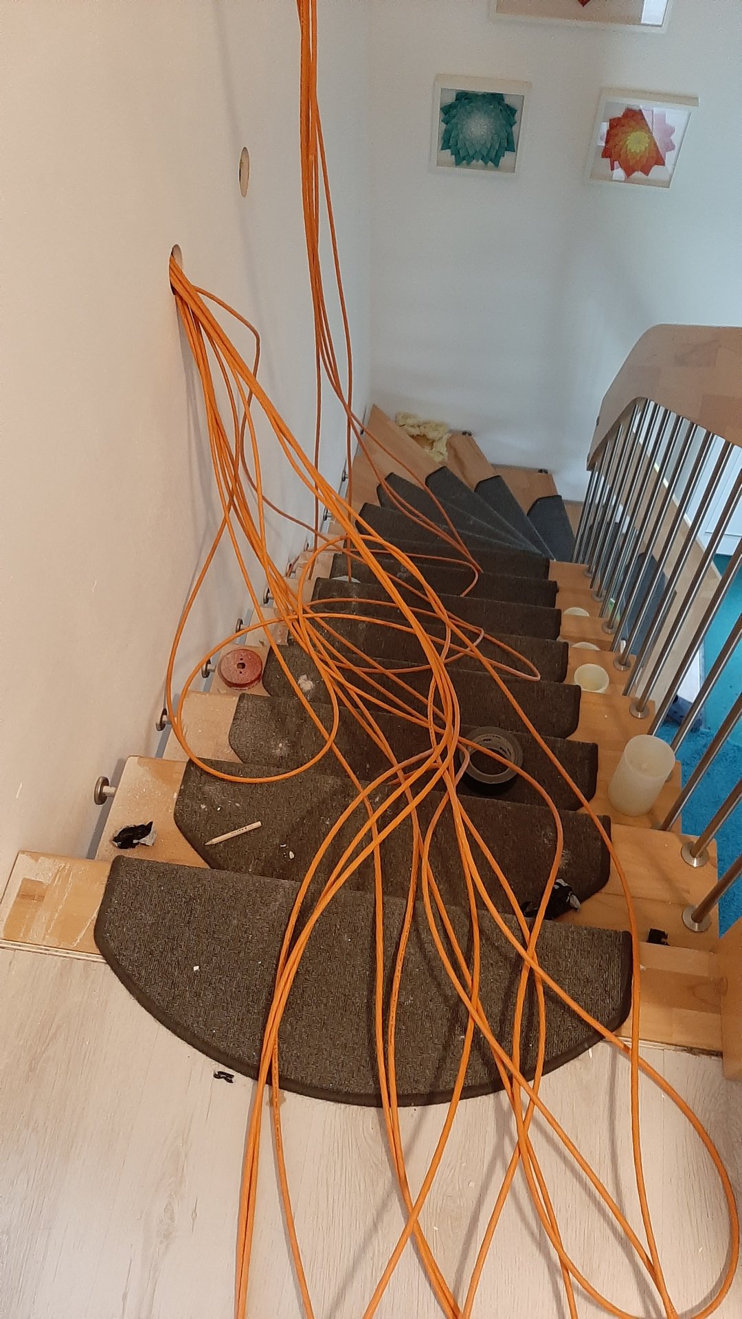 Nicht alle Kabel verlaufen dort. Die Kabel für Wohnzimmer, die Dose im Bastelkeller sowie Wlan werden unter der Kellerdecke entlang geführt und verteilt.