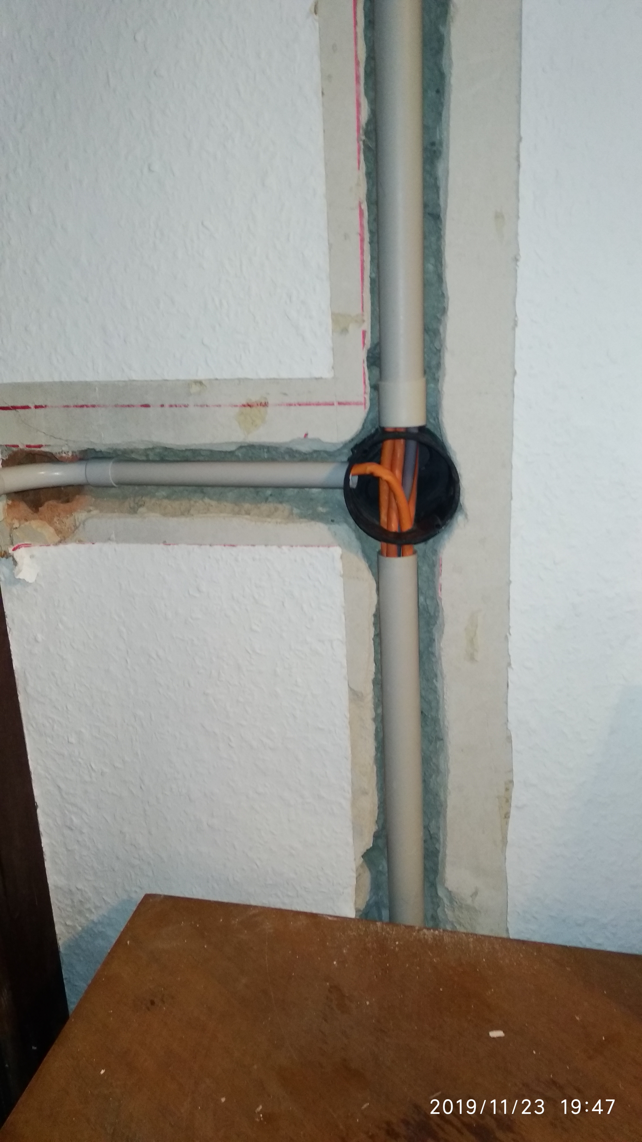 ... hier zweigt das Kabel für die Gegensprechanlage ab: