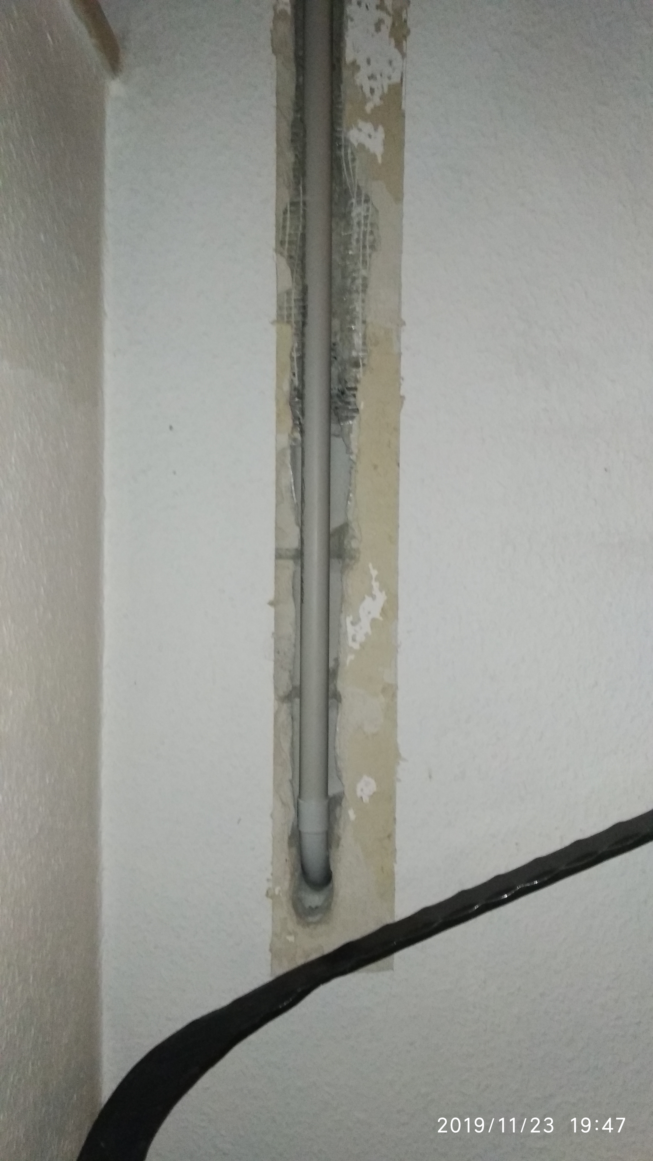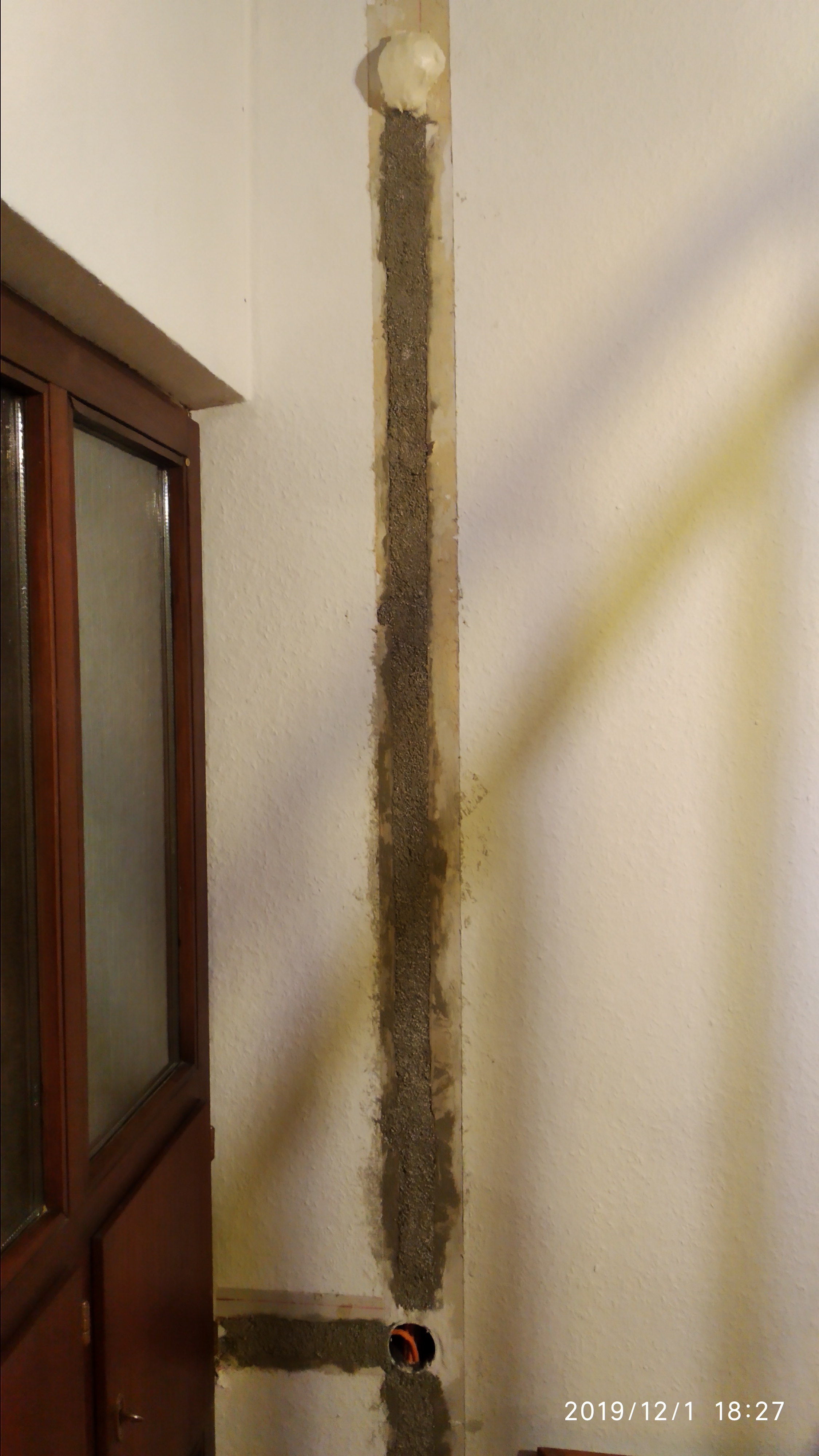 Ein kleiner Schlitz wurde in die Wand geschlagen um den Großteil der Kabel unter Putz laufen zu lassen: