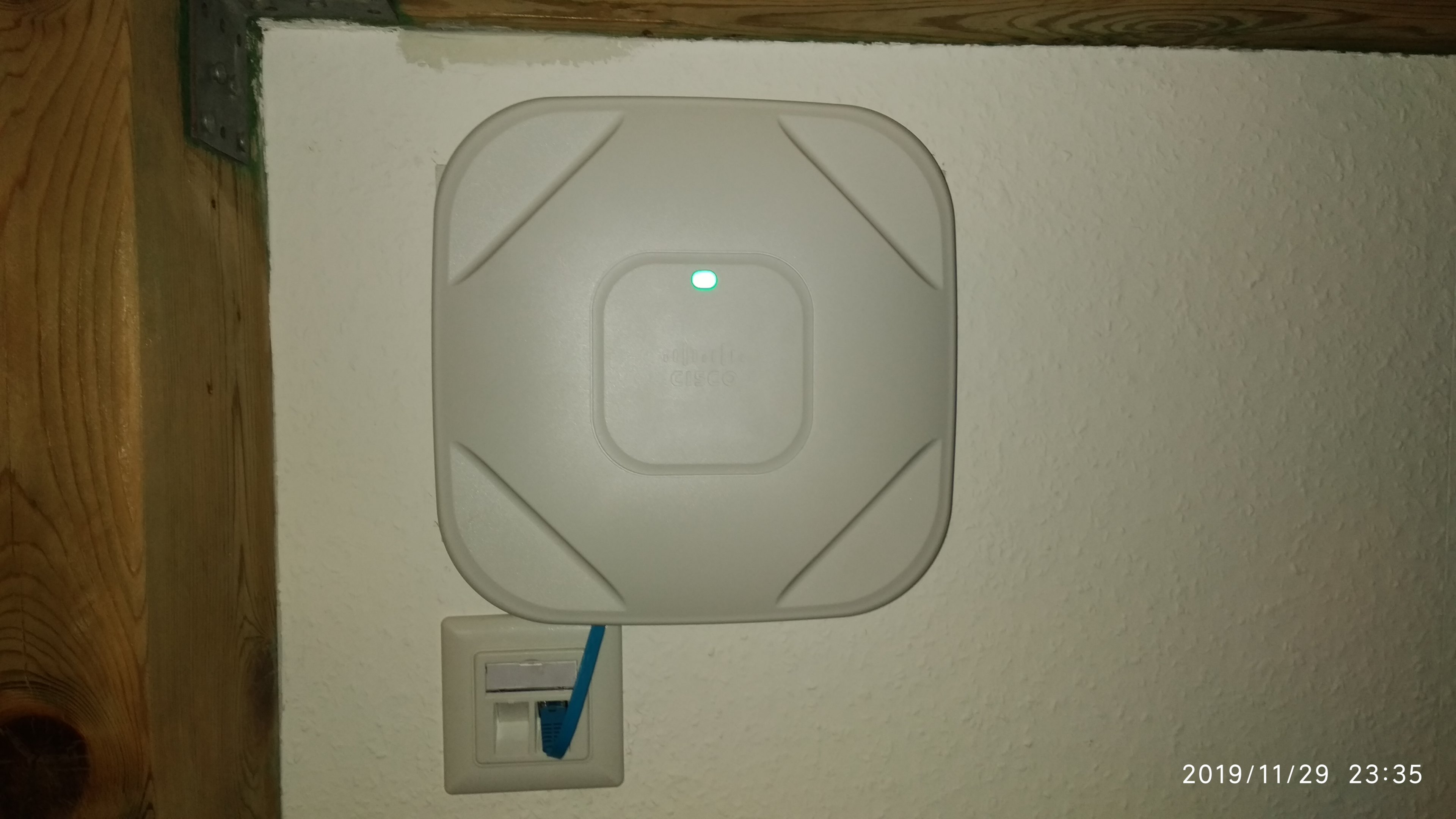 Dieser hing allerdings unschön im Hausgang und es war auch keinerlei PoE möglich, was weitere Netzteile und Kabel zur Folge hatte für Wlan, Access point und DECT-Sender für die Telefone. Auch war es so eine Sache, für die Dachgeschosswohnung - wo der Access Point hängt, eine vernünftige verbindung zu legen.