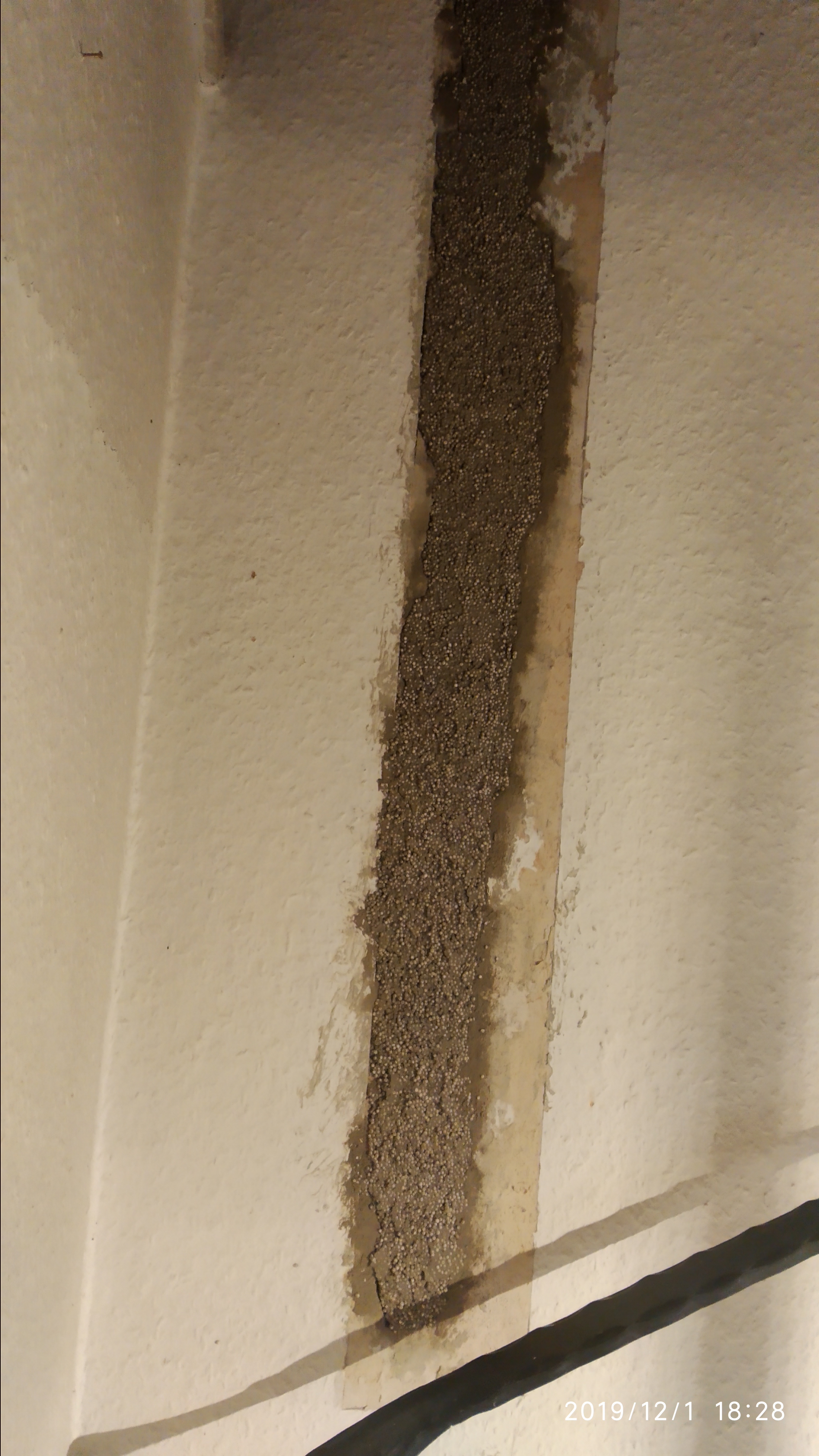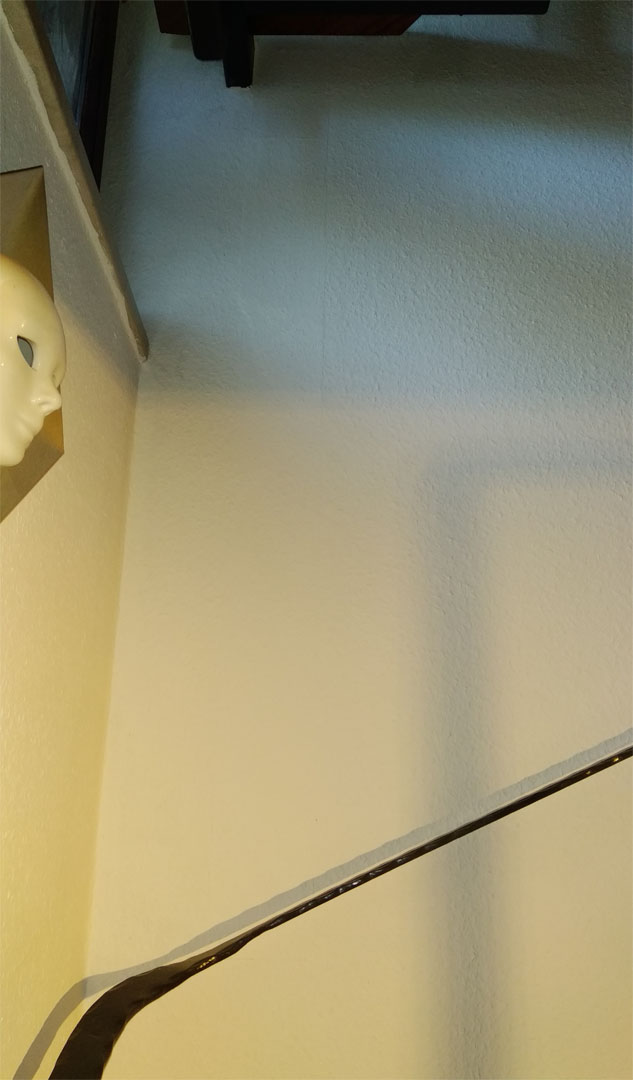 Unten sieht man die zugespachtelten Löcher, wo ein Teil der technik vorher hing.