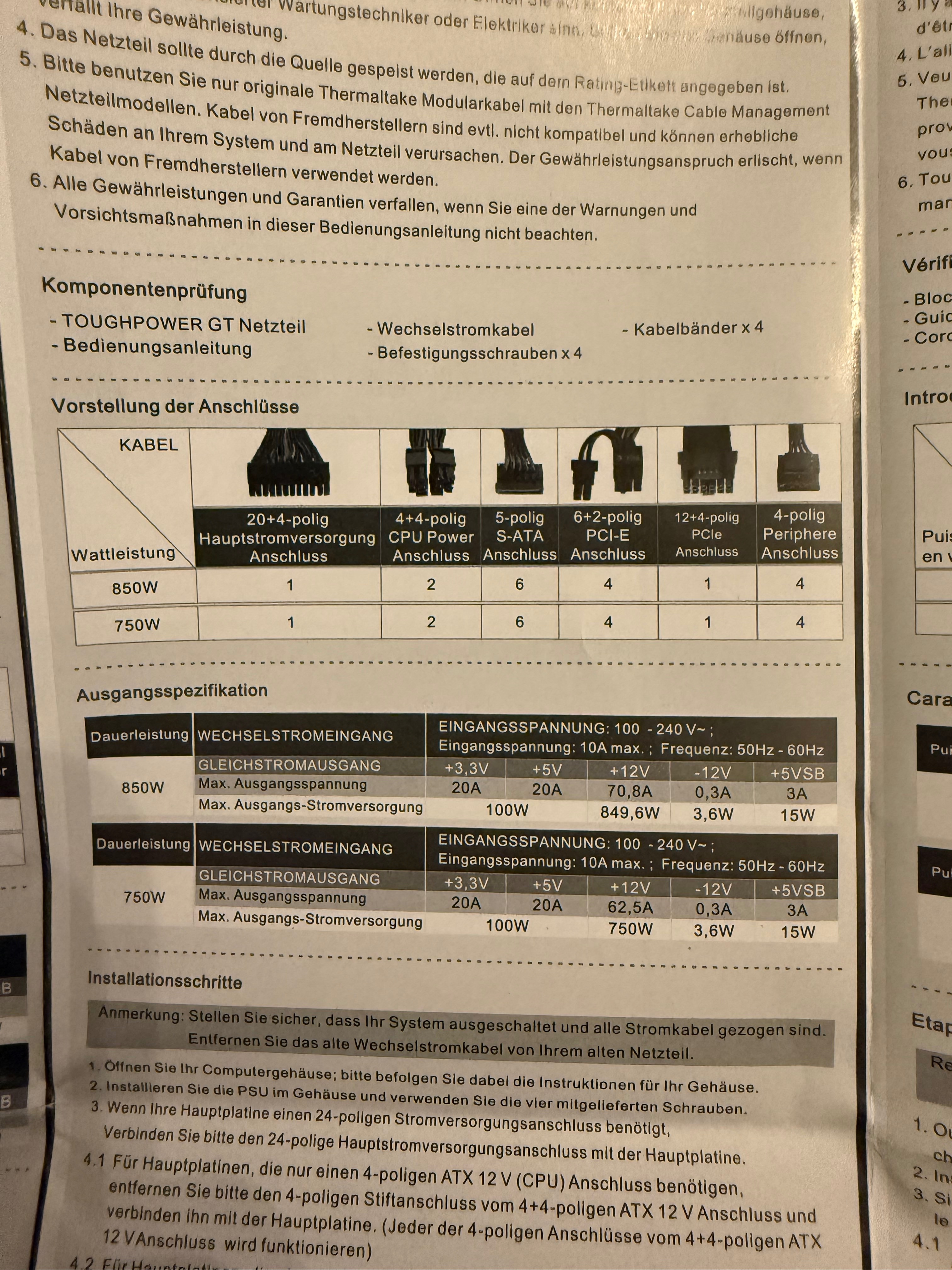 Ich poste kurz ein Bild von meinem Netzteil und dem Mainboard Manual und dem Kabel.
