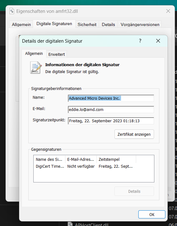 der test modus lies sich per cmd befehl ohne weiteres abschalten. bei der suche nach unsignierten treibern mittels sigverif wurden die beiden genannten treiber von AMD aufgelistet.