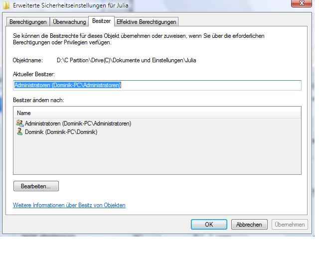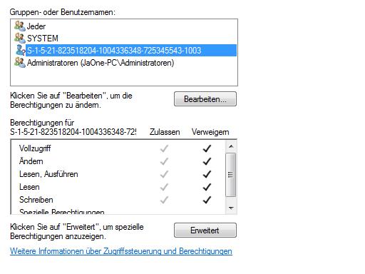 "Sie benötigen mehr Berechtigungenzur Durchführung des Vorgangs, Sie brauchen folgende Berechtigung ...(Ganz viele Zahlen)... um Änderungen an der Datei durchführen zu können"