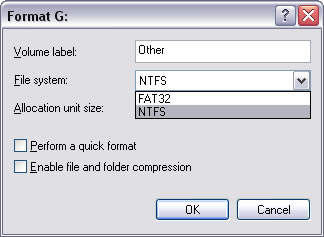 Aber unter WinXP kann man anscheinend nur NTFS formatieren...