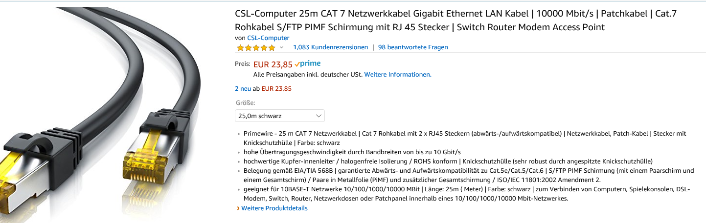 Danke, hätte ich den Fred vorher gelesen wäre es ein CAT6a Kabel geworden, wollte halt mit der Länge nichts falsch machen.