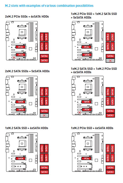 was genau verstehst du daran nicht?- M2_1 slot supports PCIe 3.0 x4 (RYZEN series processors) or PCIe 3.0 x2 (7th Gen A-series/ Athlon™ processors) and SATA 6Gb/s 2242/ 2260 /2280/ 22110 storage devices