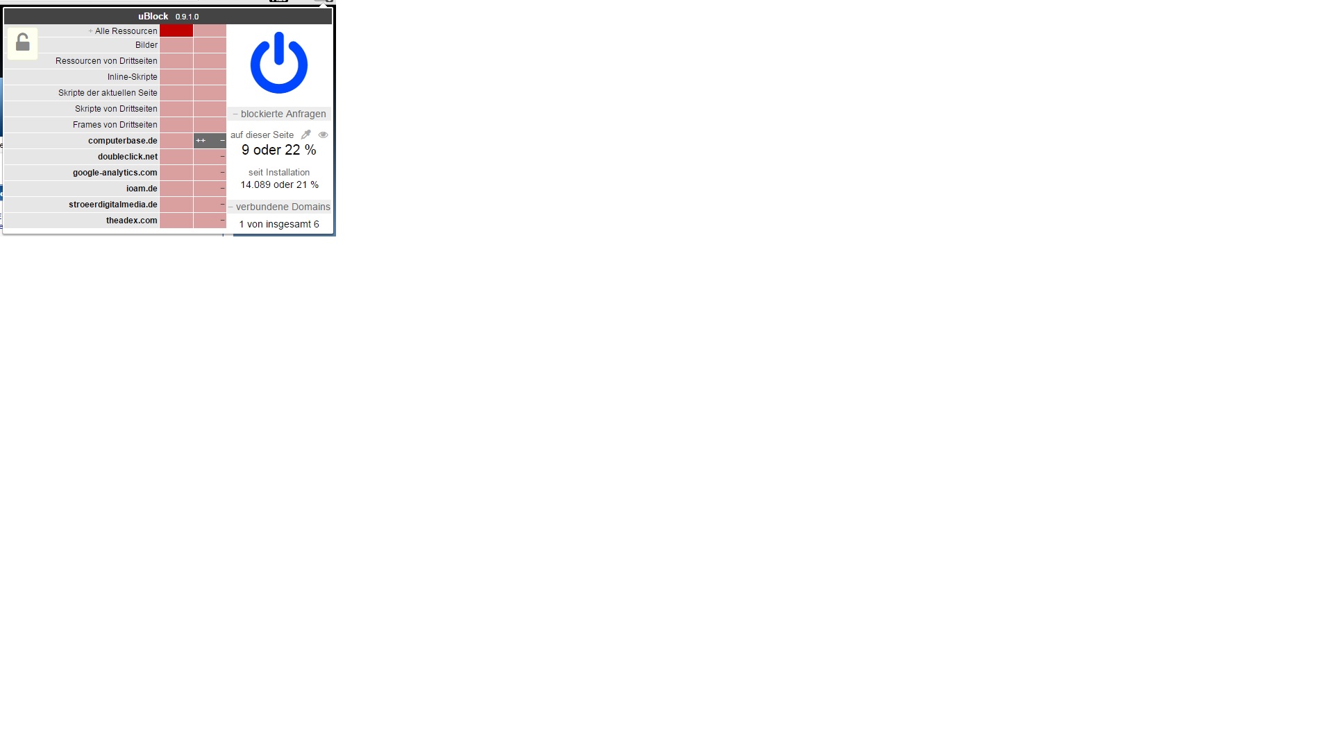 Netter Nebeneffekt ist auch, daß Seiten gefühlt schneller laden und sich flüssiger bedienen lassen als mit dem Einsatz meiner vorherigen Tools. Lerne aber noch die richtige Verwendung von uBlock. Wenn jemand Tipps dafür hat, nur her damit