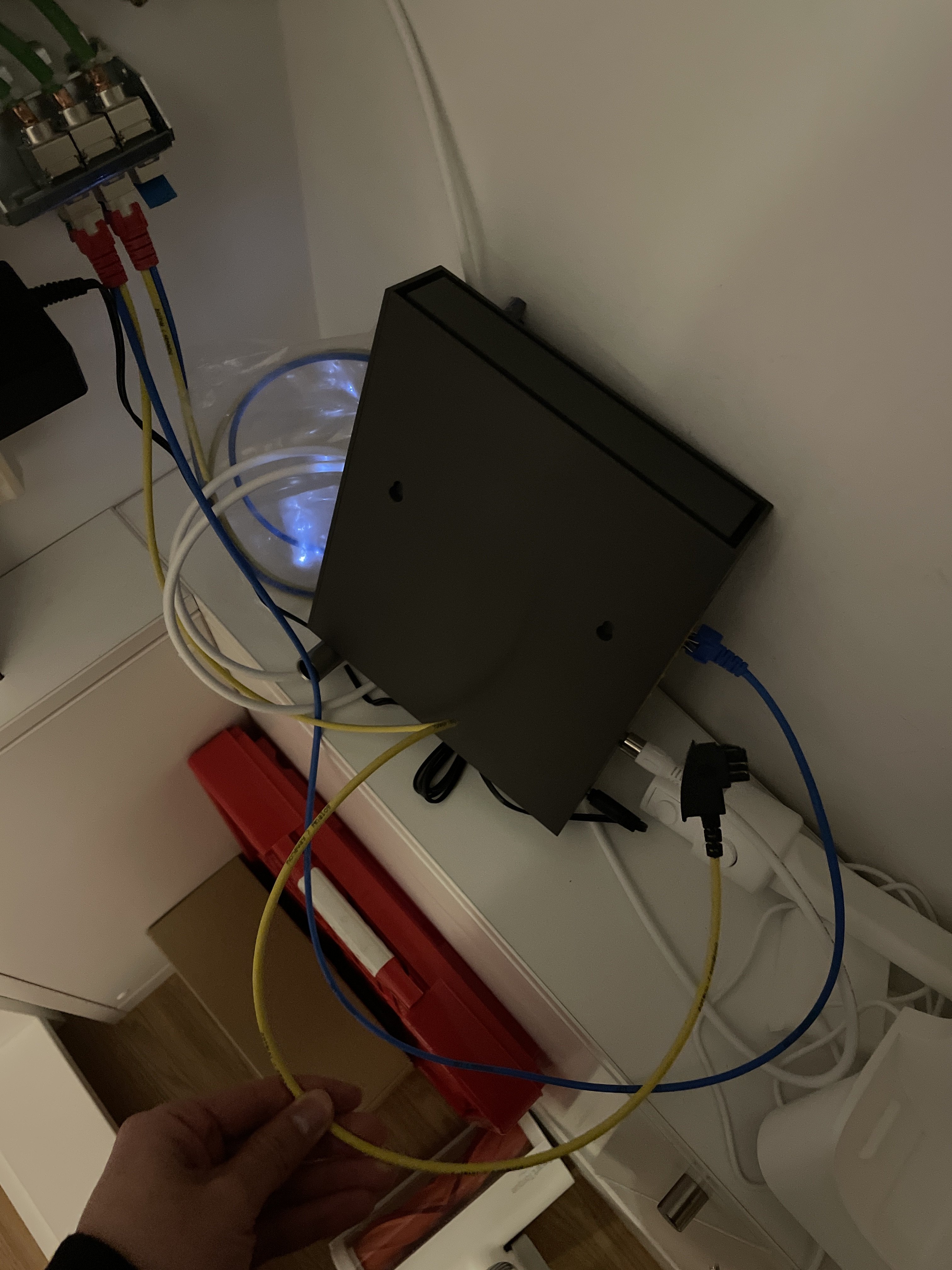Ich meine das Kabel (HW-Y-Kabel 4 LAN) welches zu dem Router verbunden wird um die Verbindung auf weitere LAN Buchsen in der Wohnung zu verteilen, erlaubt maximal 100MBit/s.