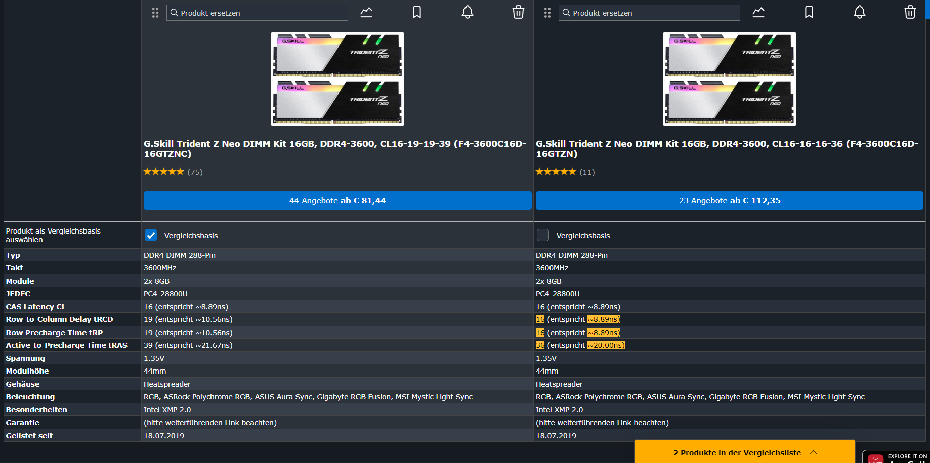 Und dann wird mir noch der Ram mit der HerstellerNr F4-3600C16D-16GTZNC vorgeschlagen (noch ein C am Ende!)
