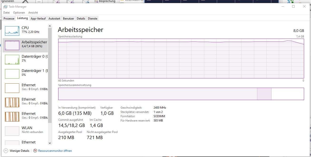 Bisher hatte ich auch keine Probleme - mal abgesehen davon, dass die acht GB chronisch bis an den Anschlag augelastet sind und wohl jede Menge ausgelagert ist (siehe TM-Screenshot). Allerdings gab es ein paar Mal üble Fehlermeldungen mit Bezug auf den RAM aus Orcacles VirtualBox. Ich nehme aber an, dass da entweder in der VM etwas suboptimal konfiguriert ist oder aber die bescheidenen 8 GB Arbeitsspeicher tatsächlich nicht ausreichten für Hostsystem und VM. Ok, hab jetzt noch 8 Gb dazugekauft. Mal sehen, ob es dann mit Dual Channel und 16 GB alles etwas entspannter aussieht.
