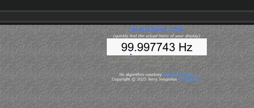 Mache ich aber nun den UFO Test oder gehe auf displayhz.com werden mir nur 100 aktive Hz angezeigt ( genau wie bei meinem Hauptmonitor, der auch nur über 100 Hz verfügt.) Den Browser habe ich natürlich auf dem MAG dabei geöffnet ^^ Die anderen beiden Monitore werden korrekt angezeigt bei den Tests.