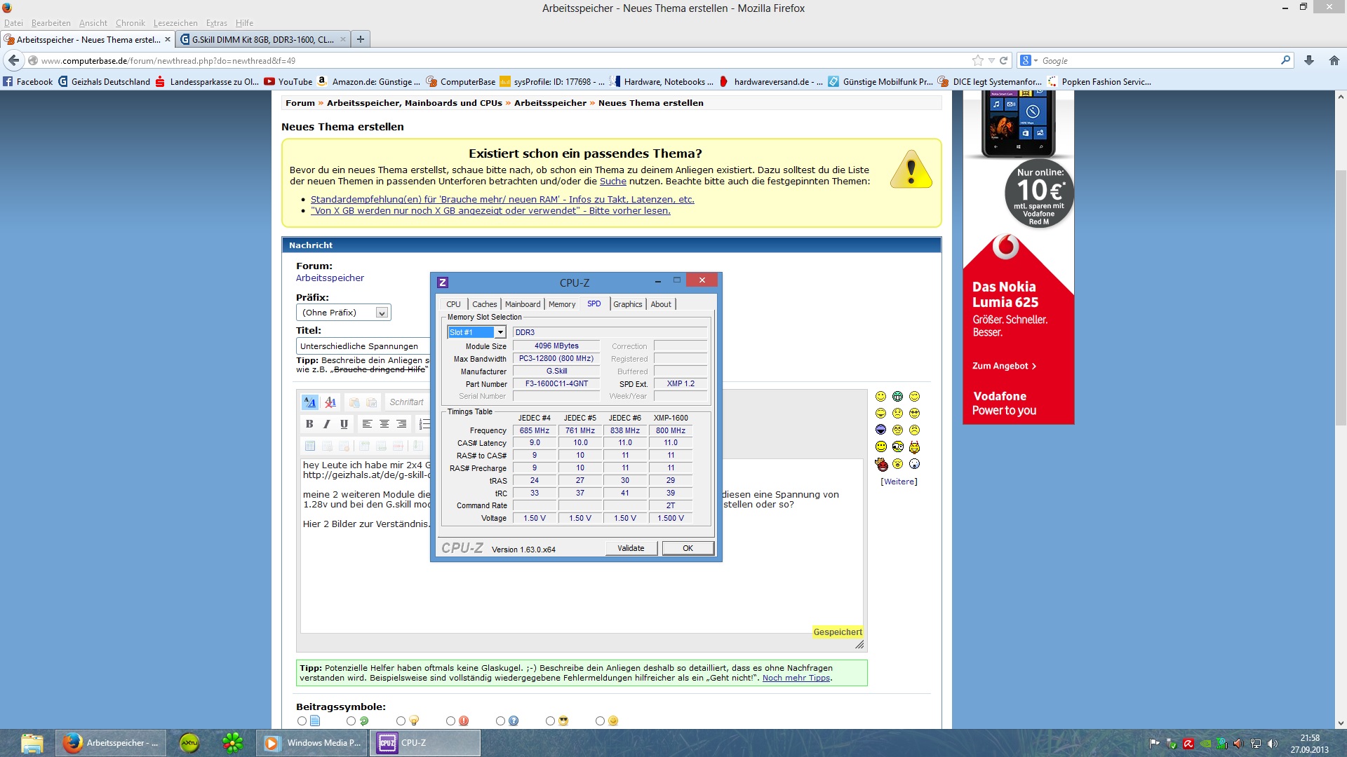 hey Leute ich habe mir 2x4 GB RAM dazu gekauft und zwar diese hier von G.skill
