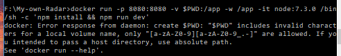 Habe es jetzt mal laut: https://stackoverflow.com/questions/46526165/docker-invalid-characters-for-volume