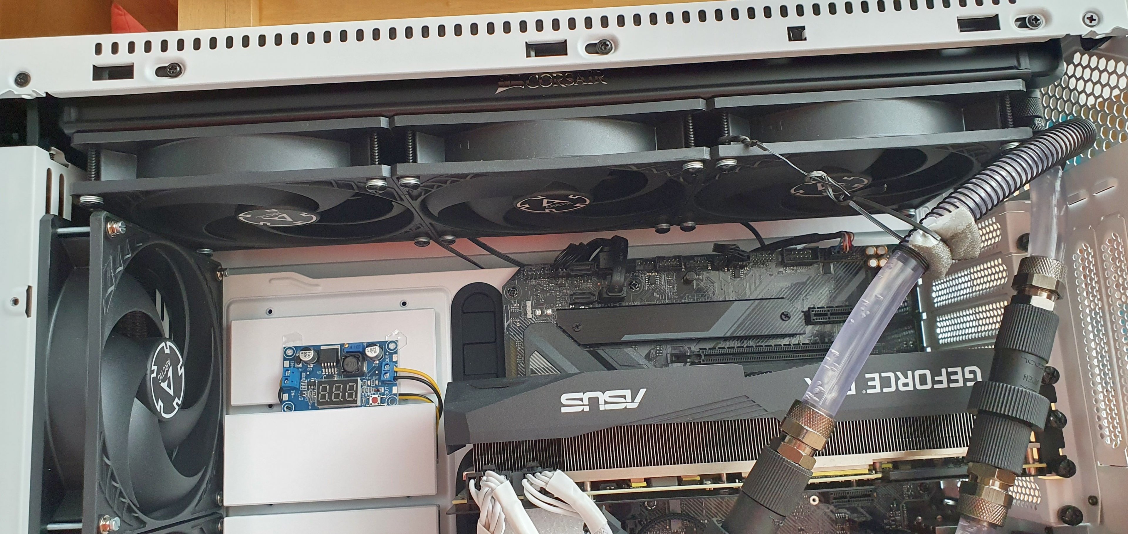 Bei deiner Kühlfläche kannst du auch alle Lüfter einfach mal auf 300rpm stellen und dann den CPU-Burner anwerfen und schauen, wo du landest. Dann ggf. schneller oder langsamer.