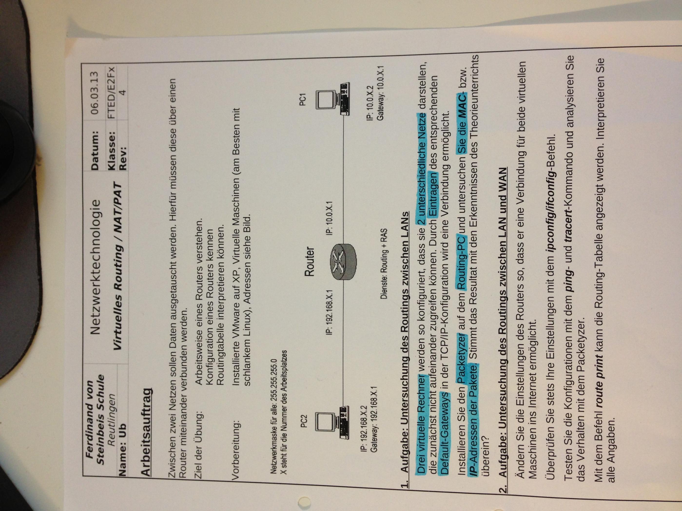 Ich habe der VM (Arbeite mit VirtuelBox) 2 Netzwerkkarten zugewiesen für jedes Netz eins. Doch dann hört auch schon auf Die Software überfordert mich leicht da ich noch nie damit gearbeitet habe und in der Schule auch nur die Theorie behandelt wurde aber nie den Umgang mit solch einer Routing Software.