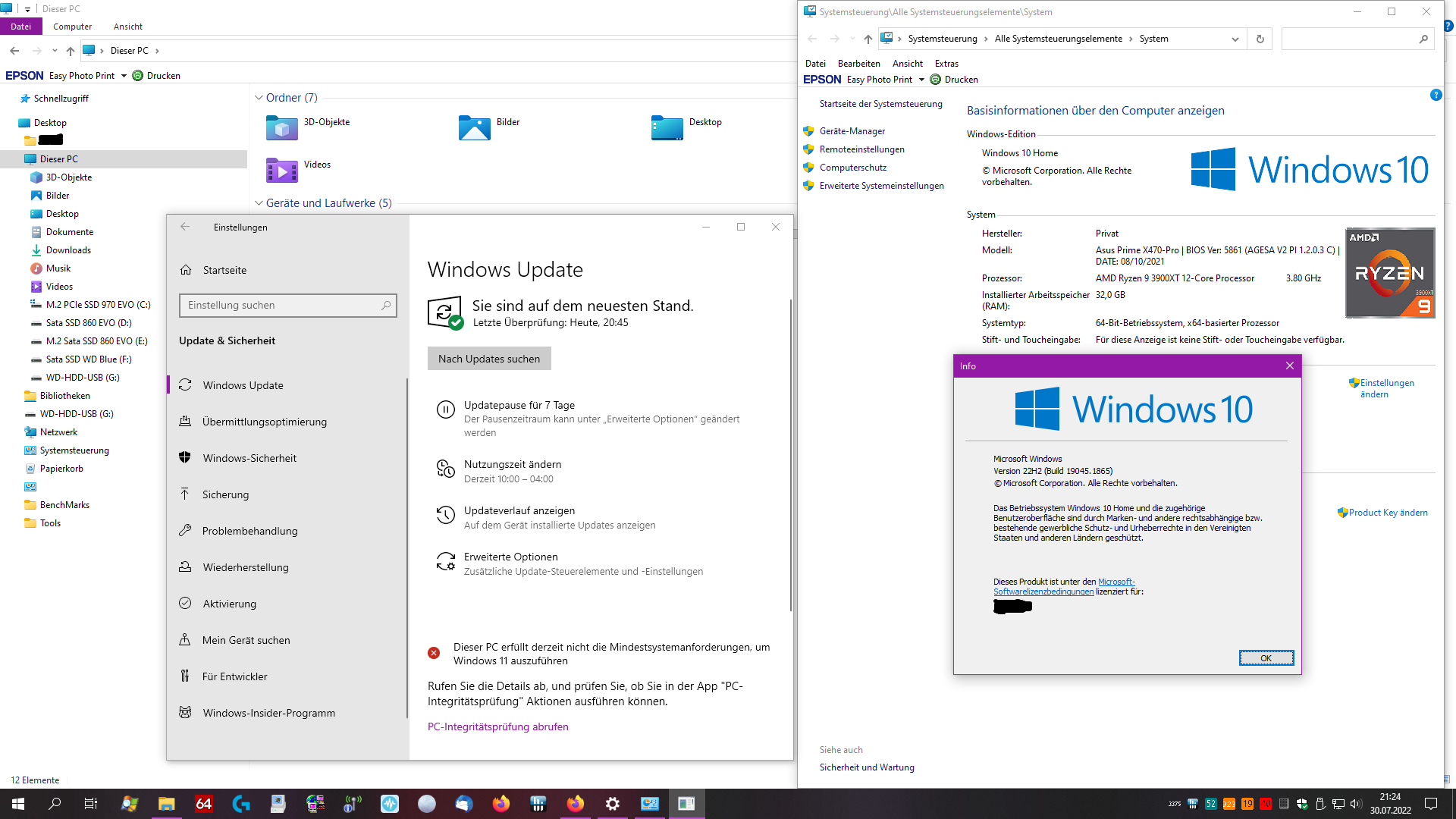 So, habe mal das Update auf Windows 10 22H2 gemacht bzw. aktiviert.