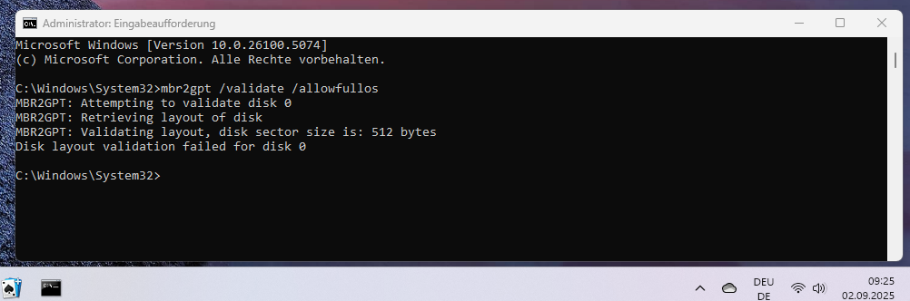 Notfalls könnte ich noch etwas Platz schaffen.Volume Z schrieb:Na ja ist viel zu wenig. Aber MBR2GPT müsste laufen.![]()