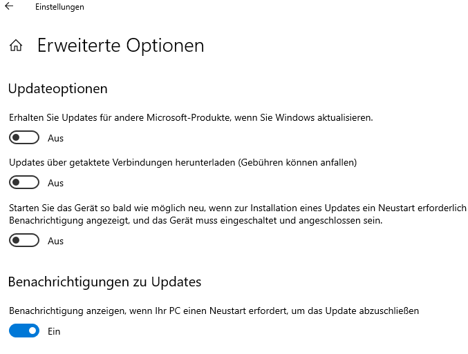 Wenn diese Funktion an ist, sollte man halt wenn die Benachrichtigung aufploppt erst noch überprüfen ob zeitgleich noch ein Update läuft bevor man Neustart ausführt...am z.B. Patchday werden oft mehrere Dinge installiert die einen Neustart brauchen und wenn man dann gleich neustartet geht zwar nichts kaputt..aber dann braucht der Neustarten Prozess solange bis das andere Update durch ist...die Erfahrung hab ich halt jetzt gemacht.bisy schrieb:Das ist Standardmäßig deaktiviert, man muss es manuell einschalten