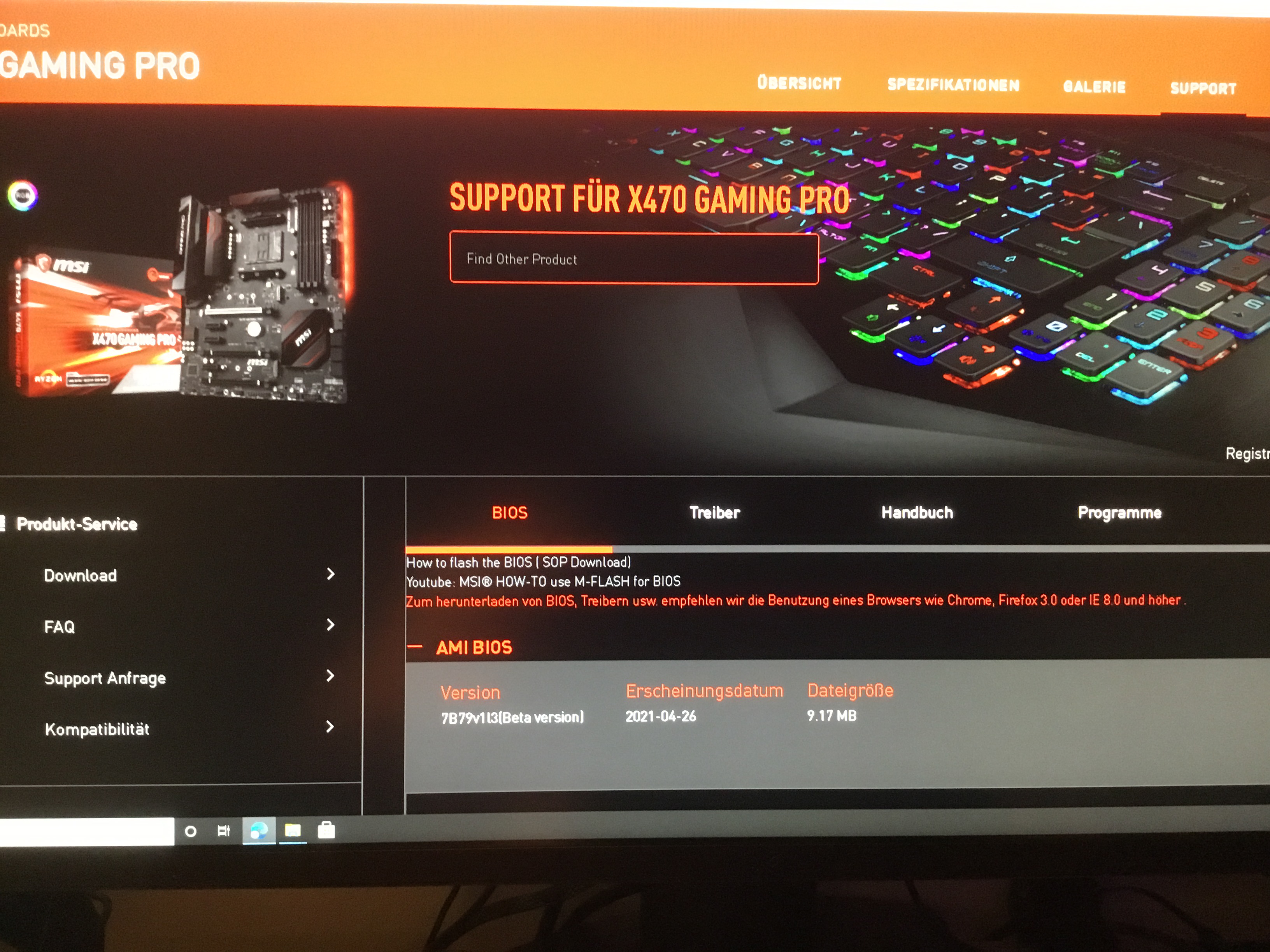 Ich habe das BIOS Update also die Beta vom 26.4.21 von der MSI Seite geladen und die Datein auf den USB Stick kopiert.