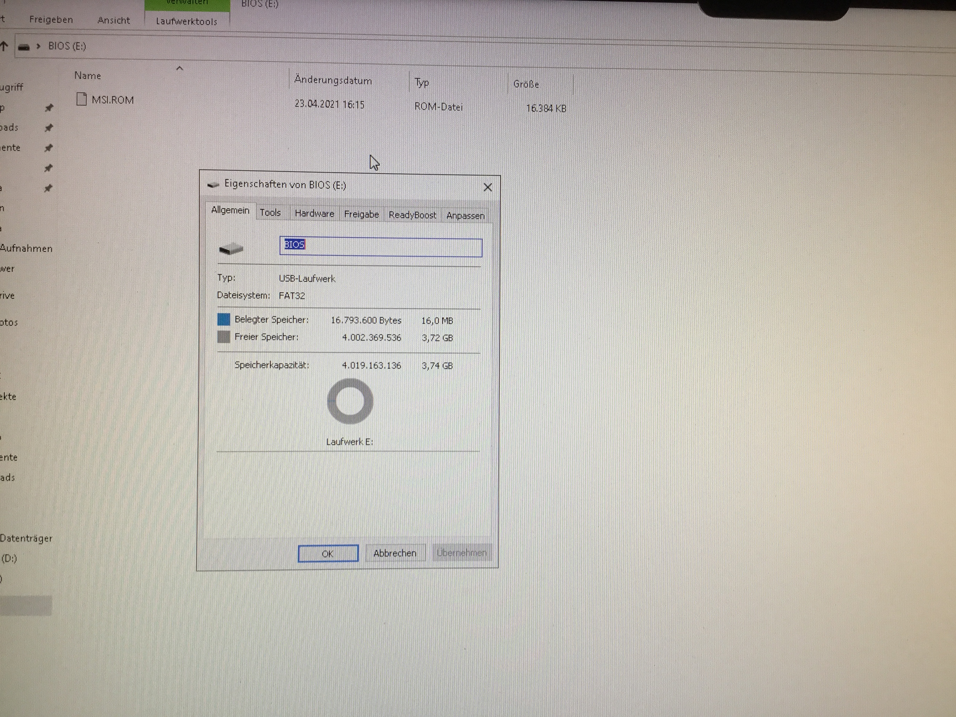 - die Datei umbenannt in MSI.ROM bzw. alternativ ohne Umbennenung gestartet