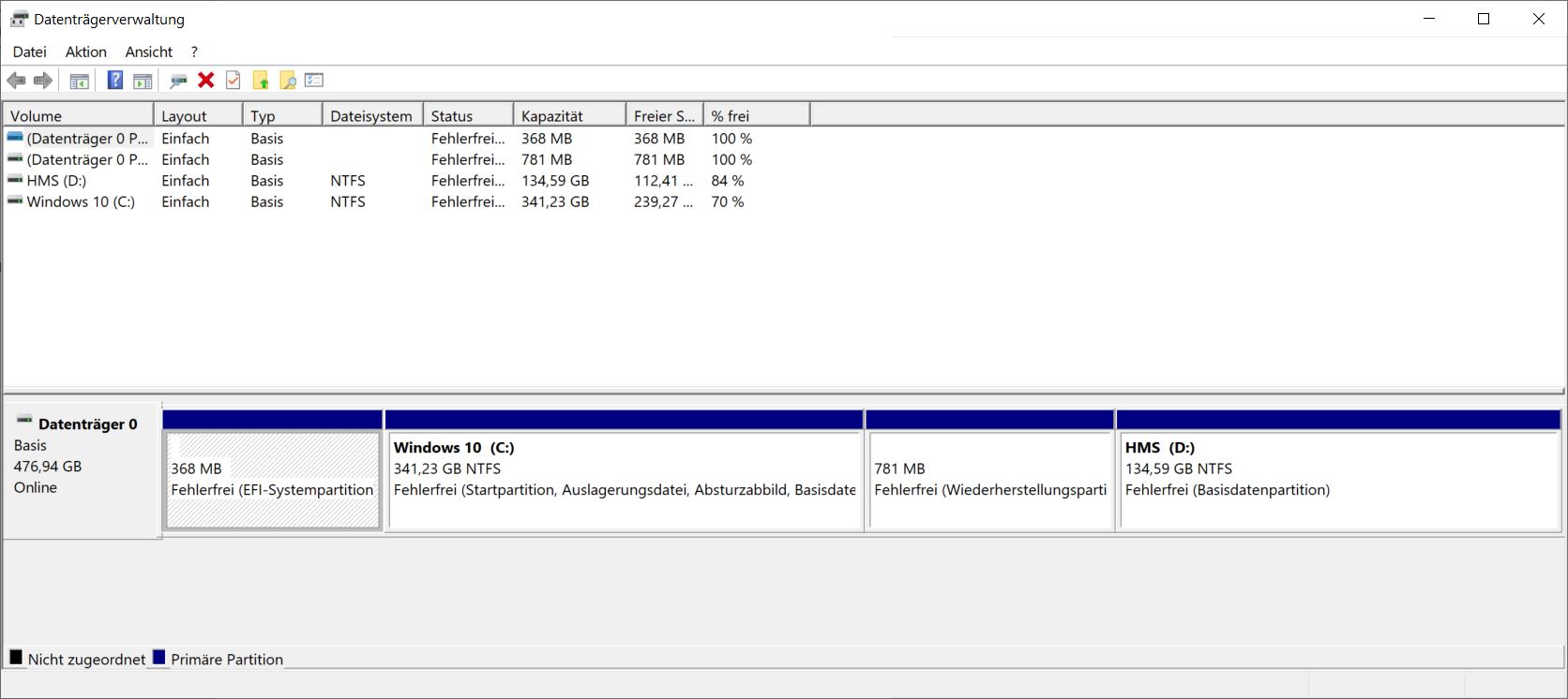 Sie können OEM-, ESP- oder Wiederherstellungspartitionen oder Offlinevolumes