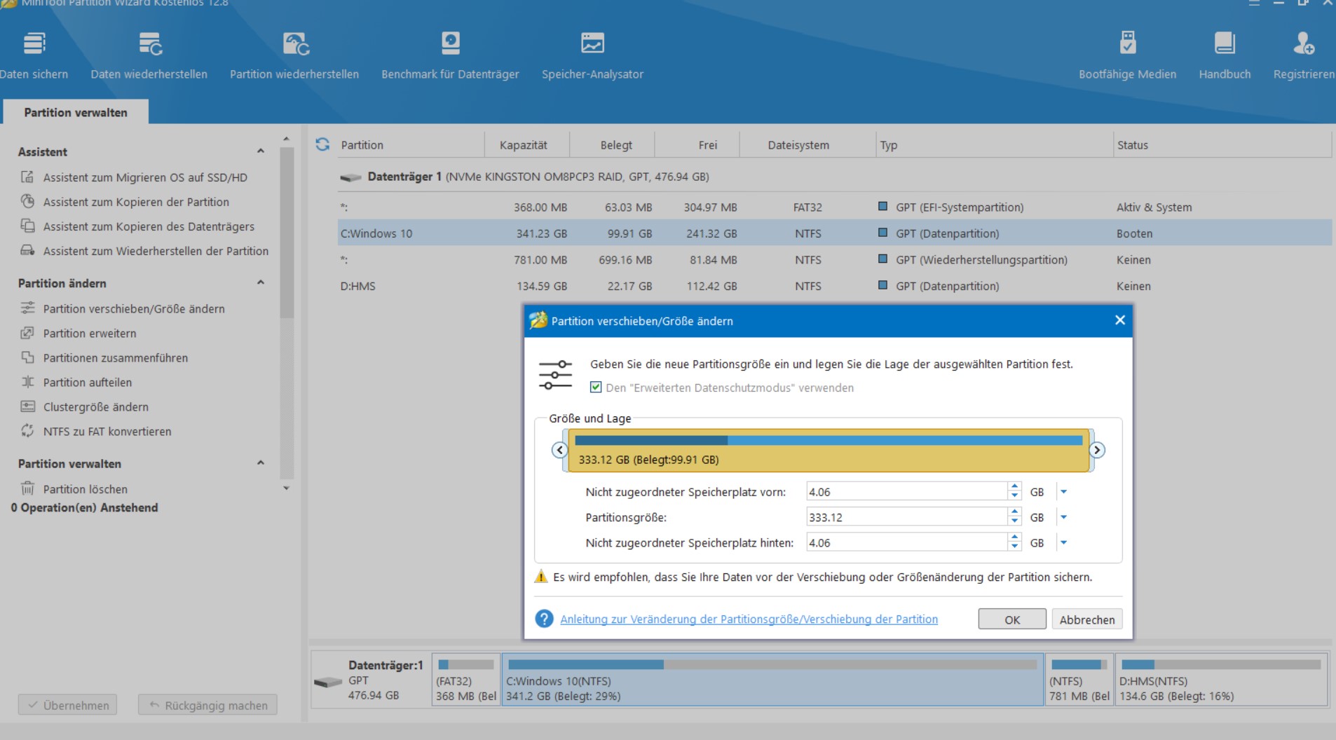 Jedoch ist das die richtige Disk sowie der richtige Part laut dem Pfad von Punkt 1. Ich habe es auch über das Programm MiniTool Partition Wizard versucht, nur dass es da überhaupt keine WinRE Partition gibt.