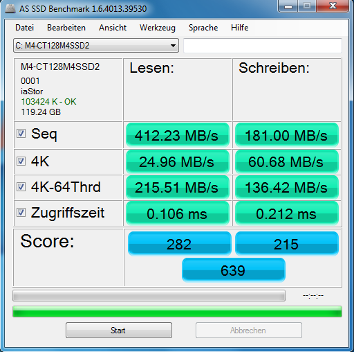 Ich habe eigentlich immer so einen AS-SSD-Test von einer C300-256gb-Version sehen wollen. Alle Welt hat immer nur die langsamen 128er.